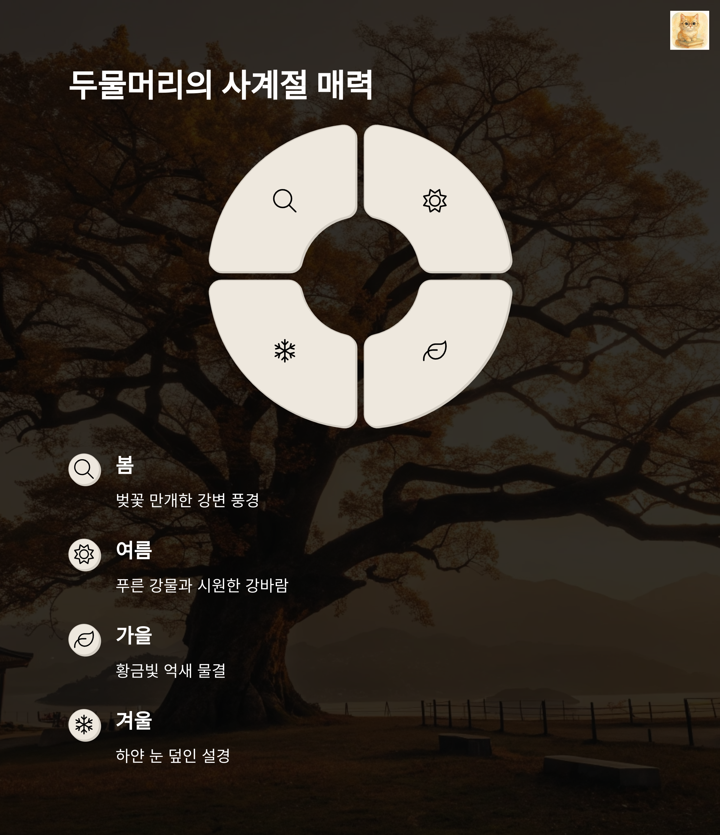 봄에는 벚꽃, 가을에는 단풍이 물들어 계절마다 색다른 매력을 만끽할 수 있습니다