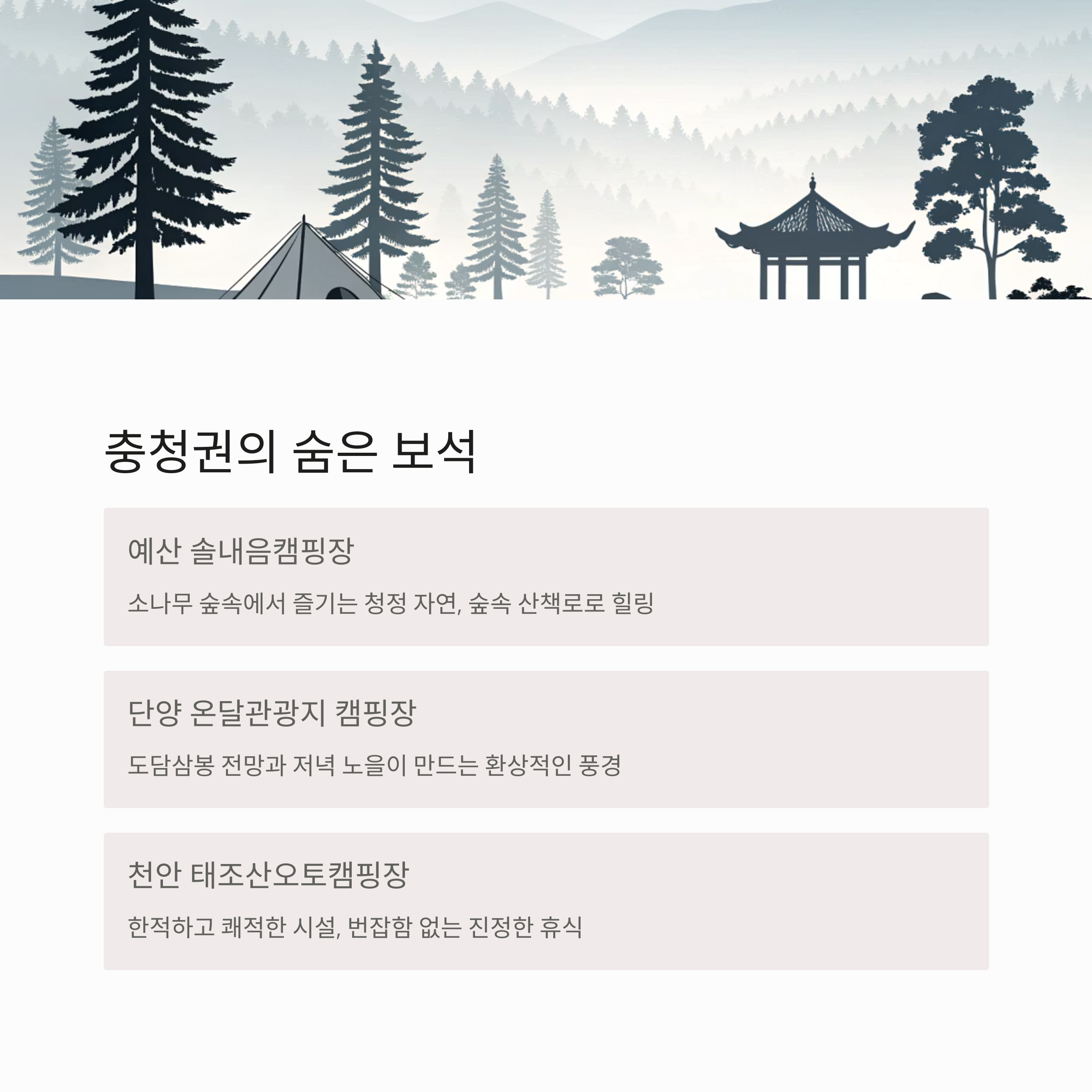 충청권 숨은 명소 - 조용한 힐링 캠핑 추천지
