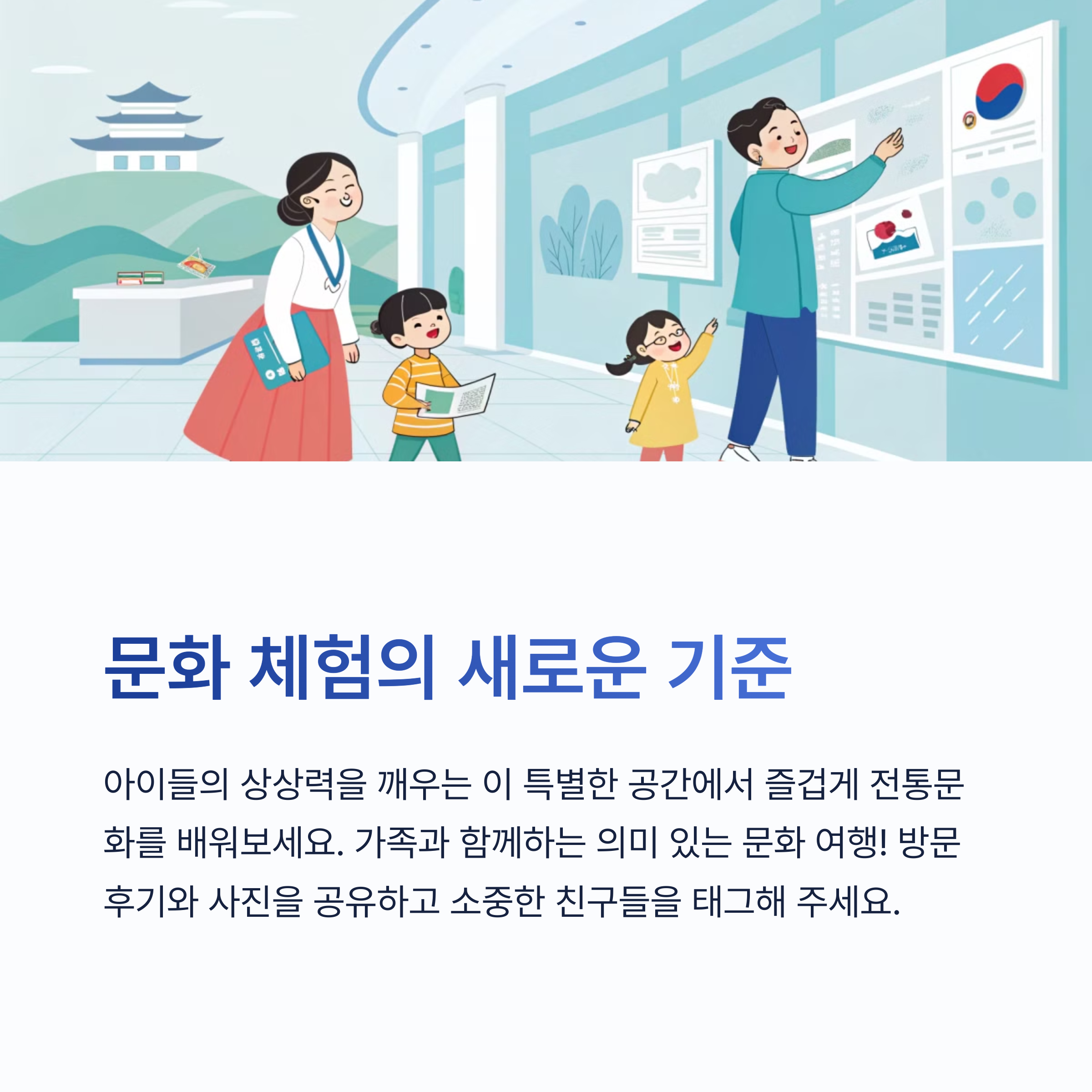 | 서울 용산 대표 역사박물관 내 어린이 체험관 | 시간별 사전예약제로 회차당 인원 제한 | 아이가 직접 참여하는 전통문화 학습 활동 |