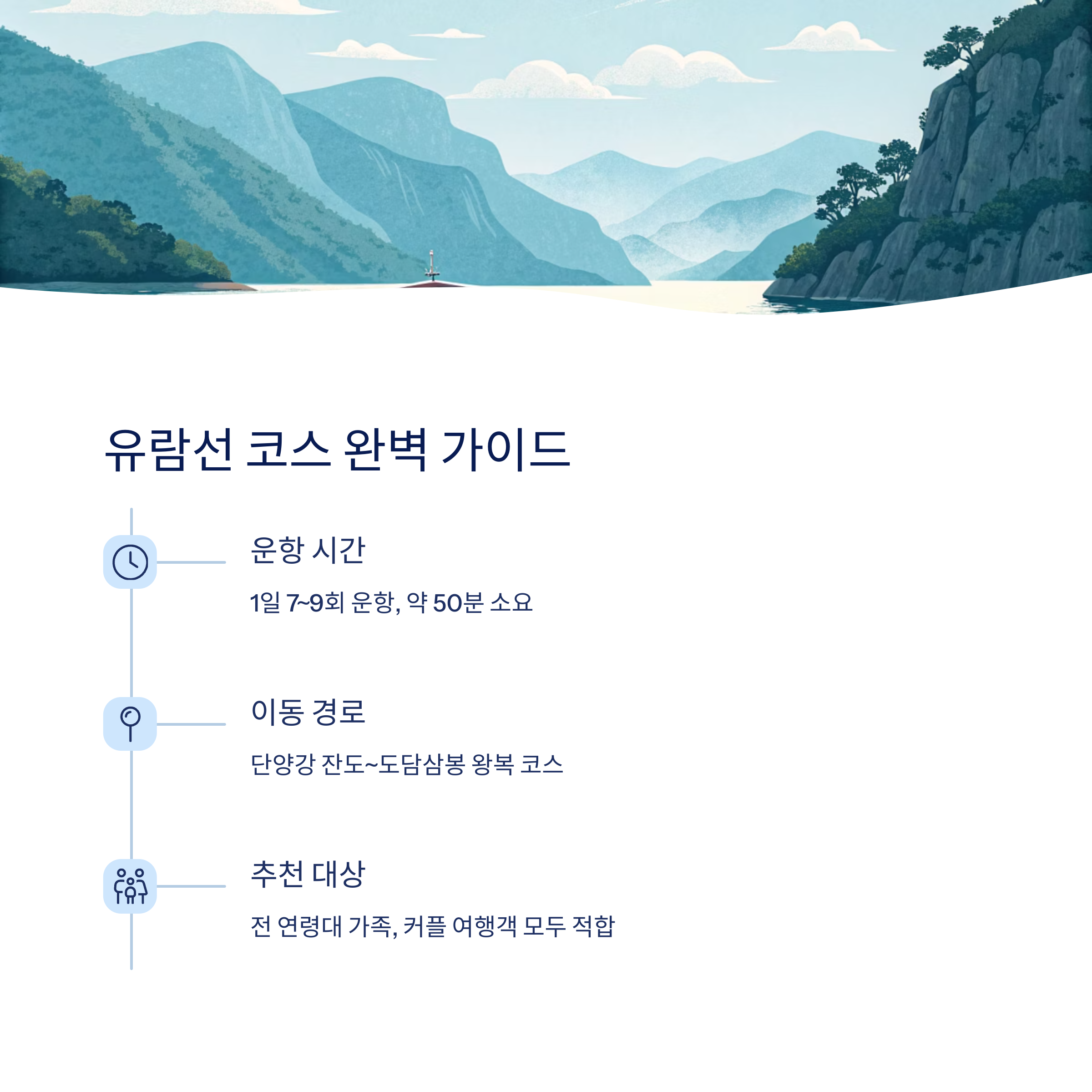 - 유람선 시간표와 현지 교통편 미리 확인하세요.