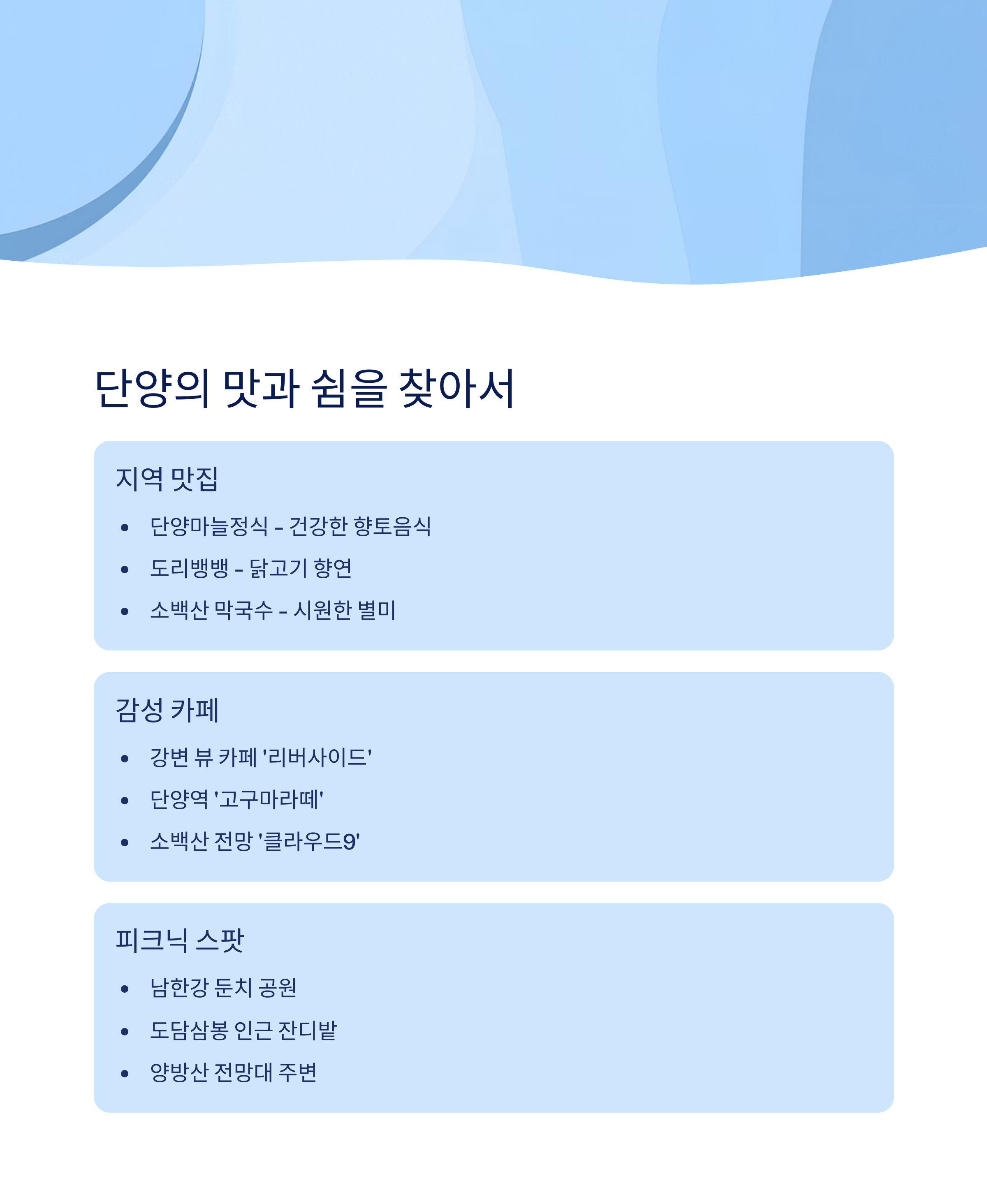 "단양은 자연의 멋과 다양한 액티비티가 조화된 여행지로 인기입니다." 특히 패러글라이딩과 유람선 투어는 일상에서 쉽게 경험하기 어려운 특별한 추억을 선사하죠.