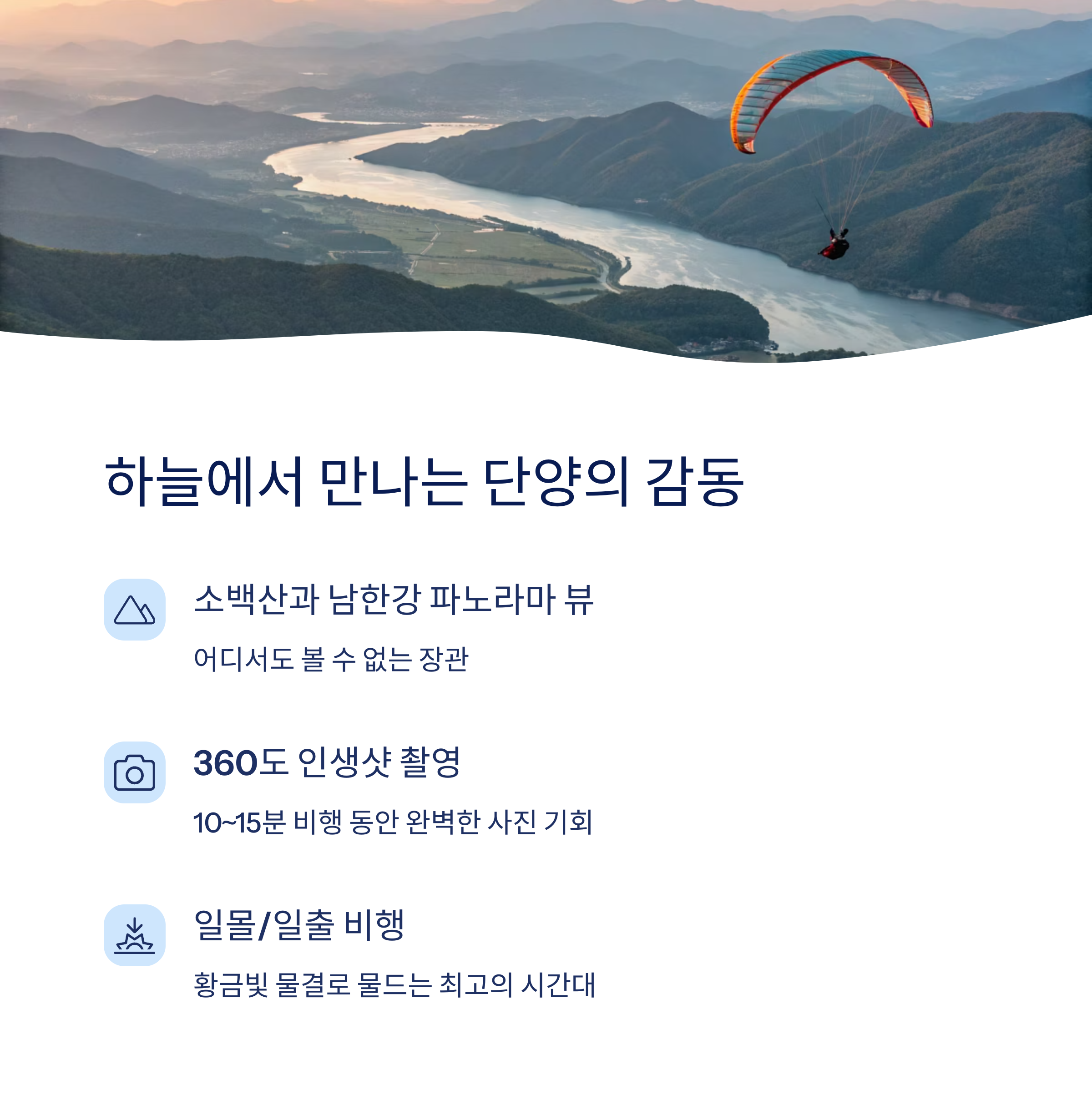 "순간, 바람을 타고 하늘로 떠오르는 짜릿함은 평생 잊지 못할 감동으로 남아요!"