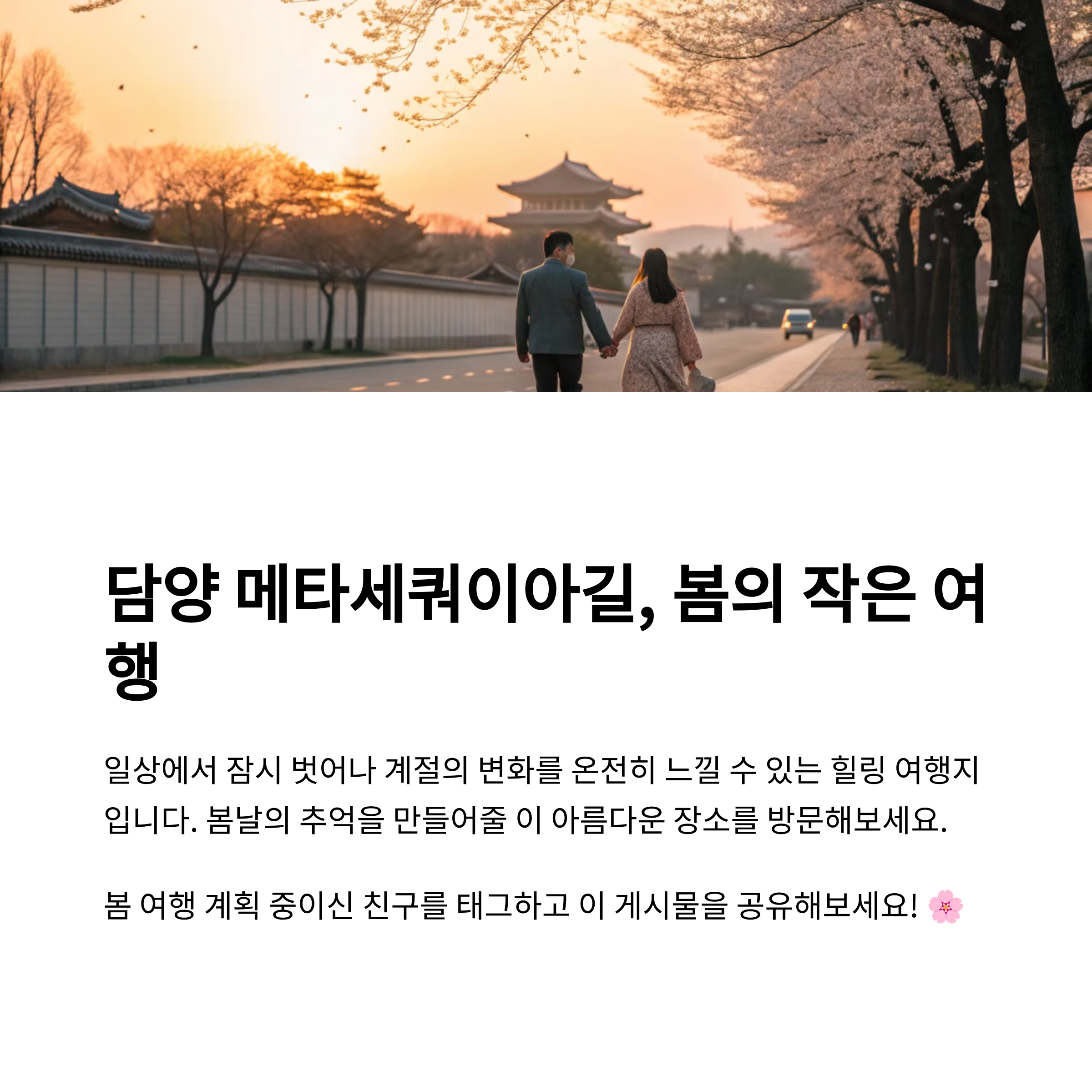 | 담양 대표 산책 명소, 힐링이 가득한 자연길 | 따뜻한 봄 햇살과 벚꽃이 어우러진 로드 | 인생샷을 위한 베스트 스팟 가득 |