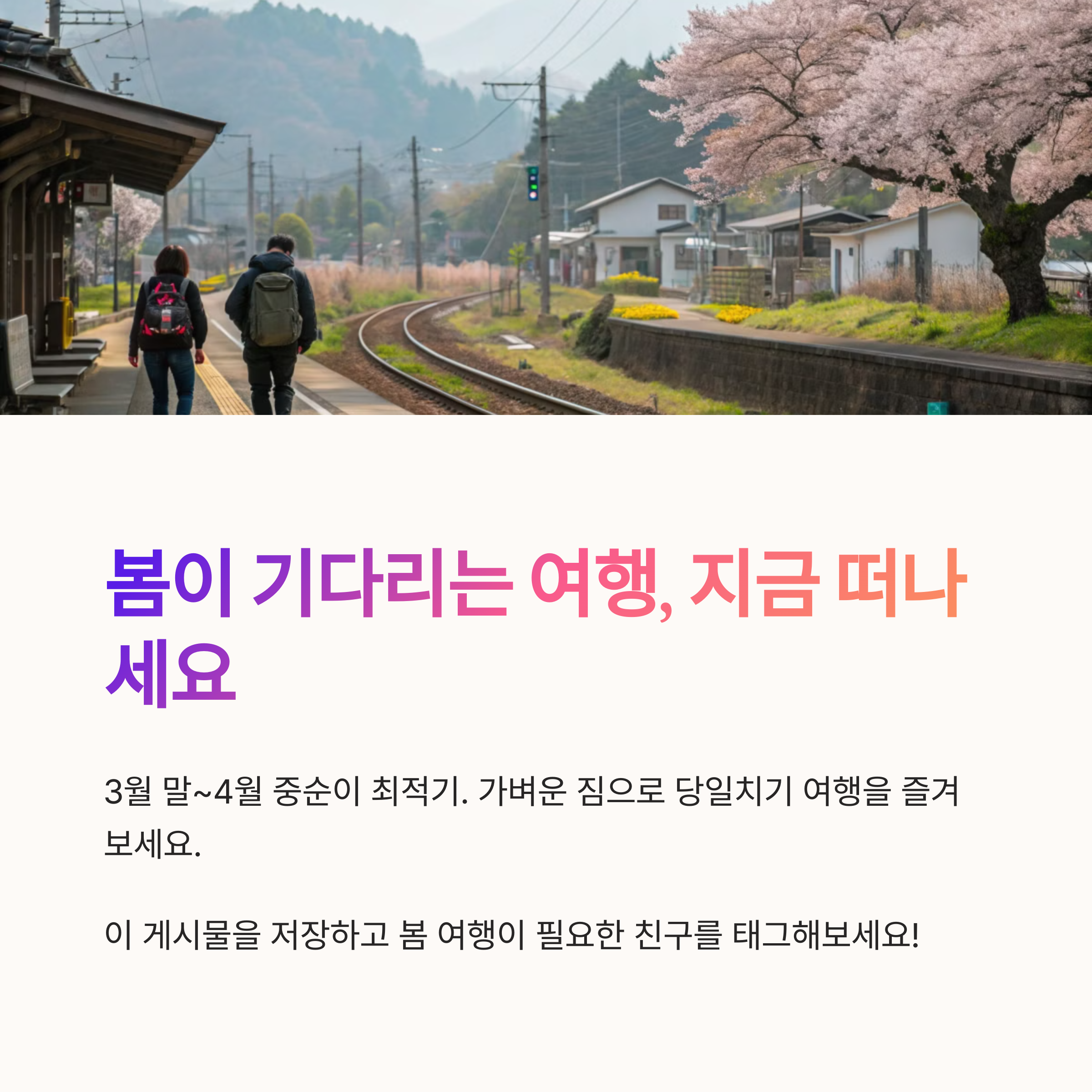 | 여행 테마 | 봄, 벚꽃, 감성 소도시 탐방 중심의 코스 |