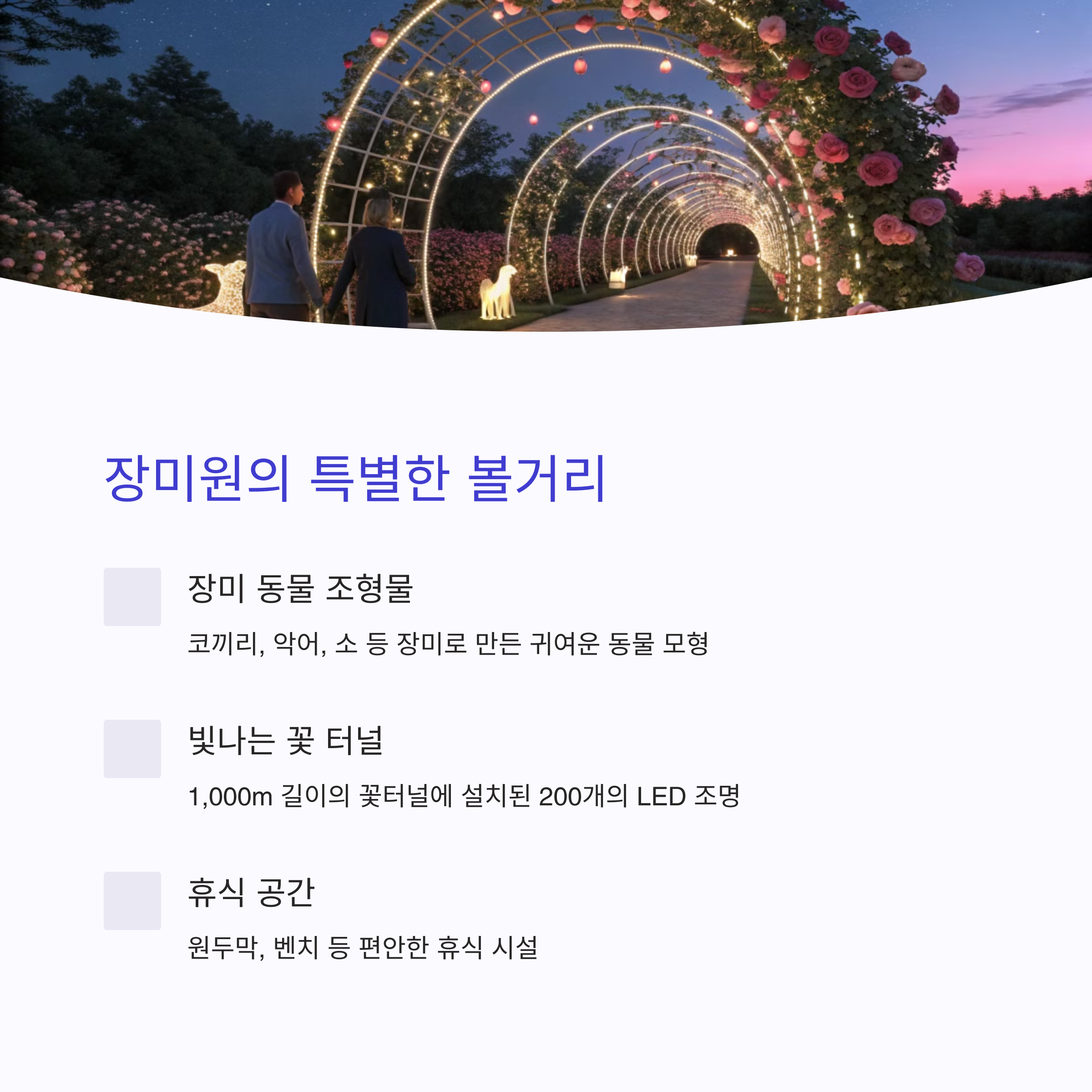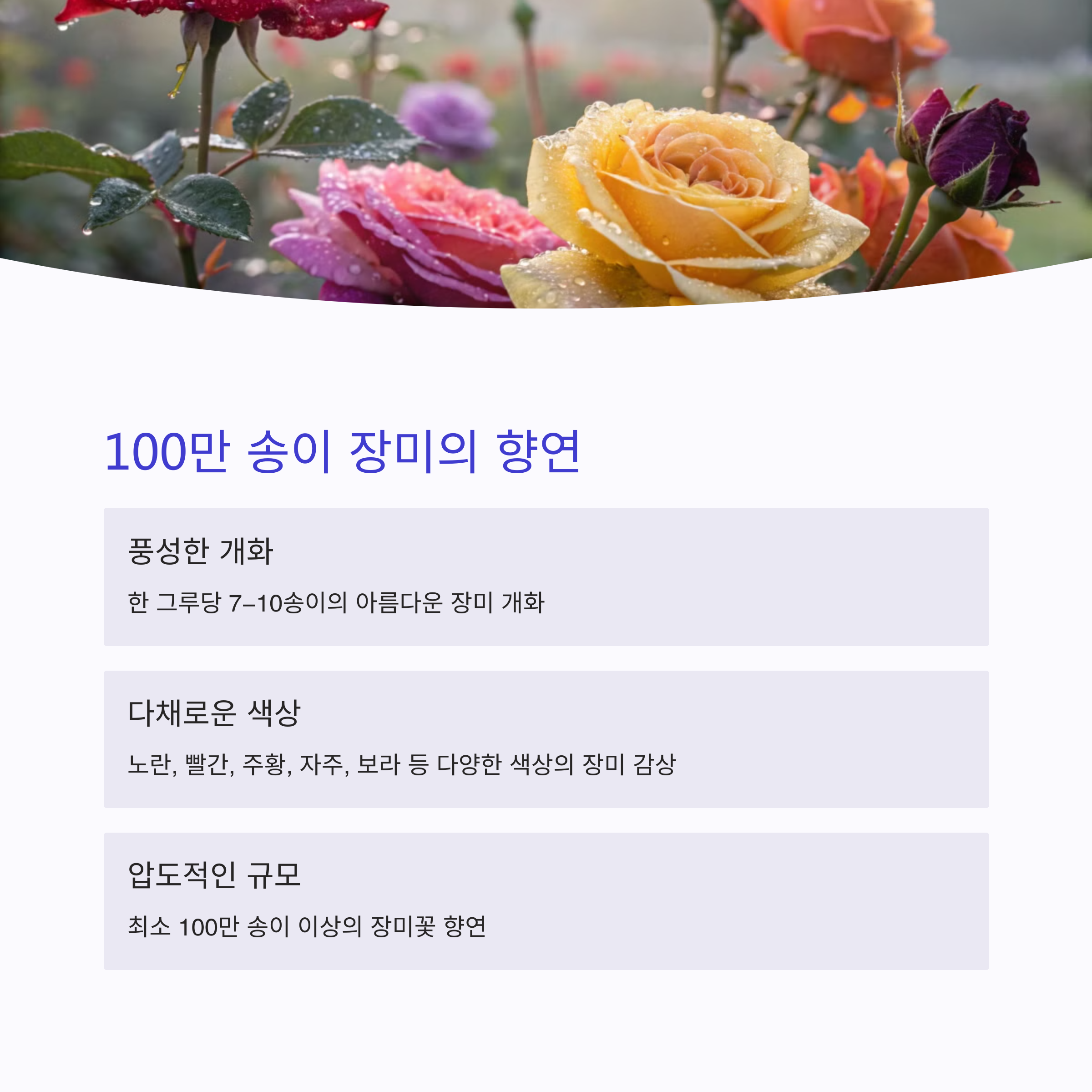 축제 기간 동안 다양한 장미를 감상할 수 있으므로 방문 계획을 세워보세요.