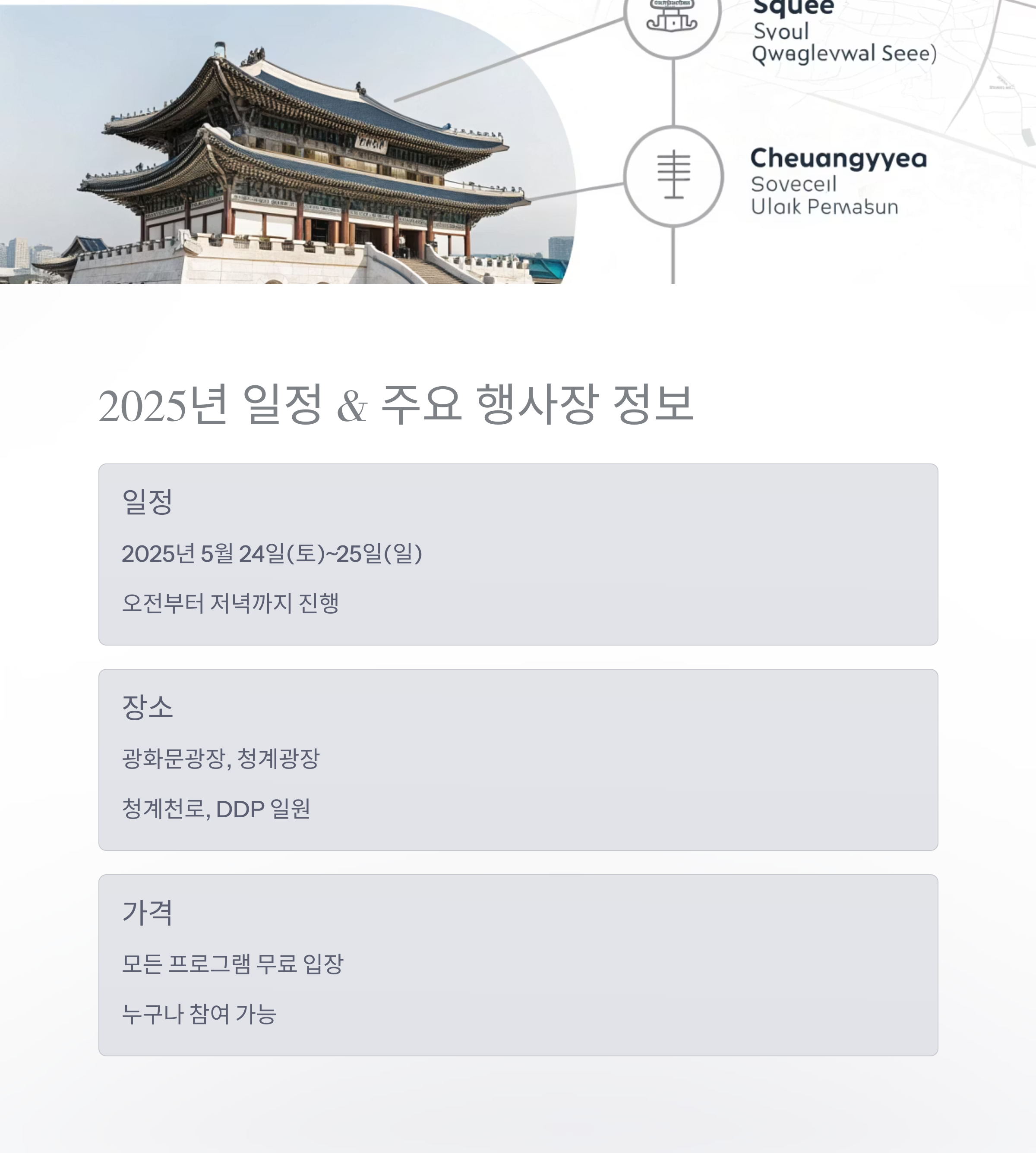 2025년 일정 및 주요 행사장 위치 정보