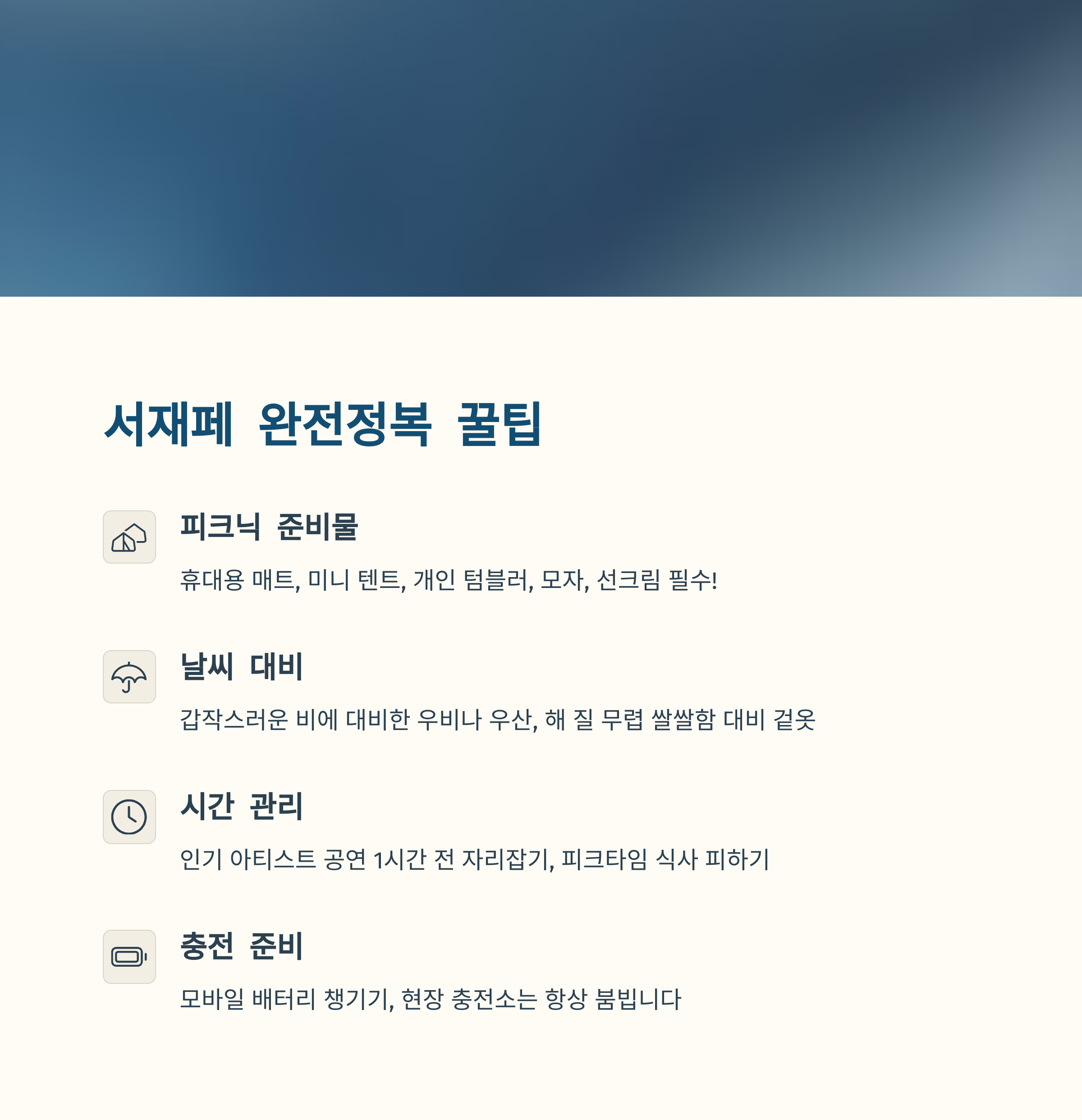 보조 배터리와 현금도 챙기면