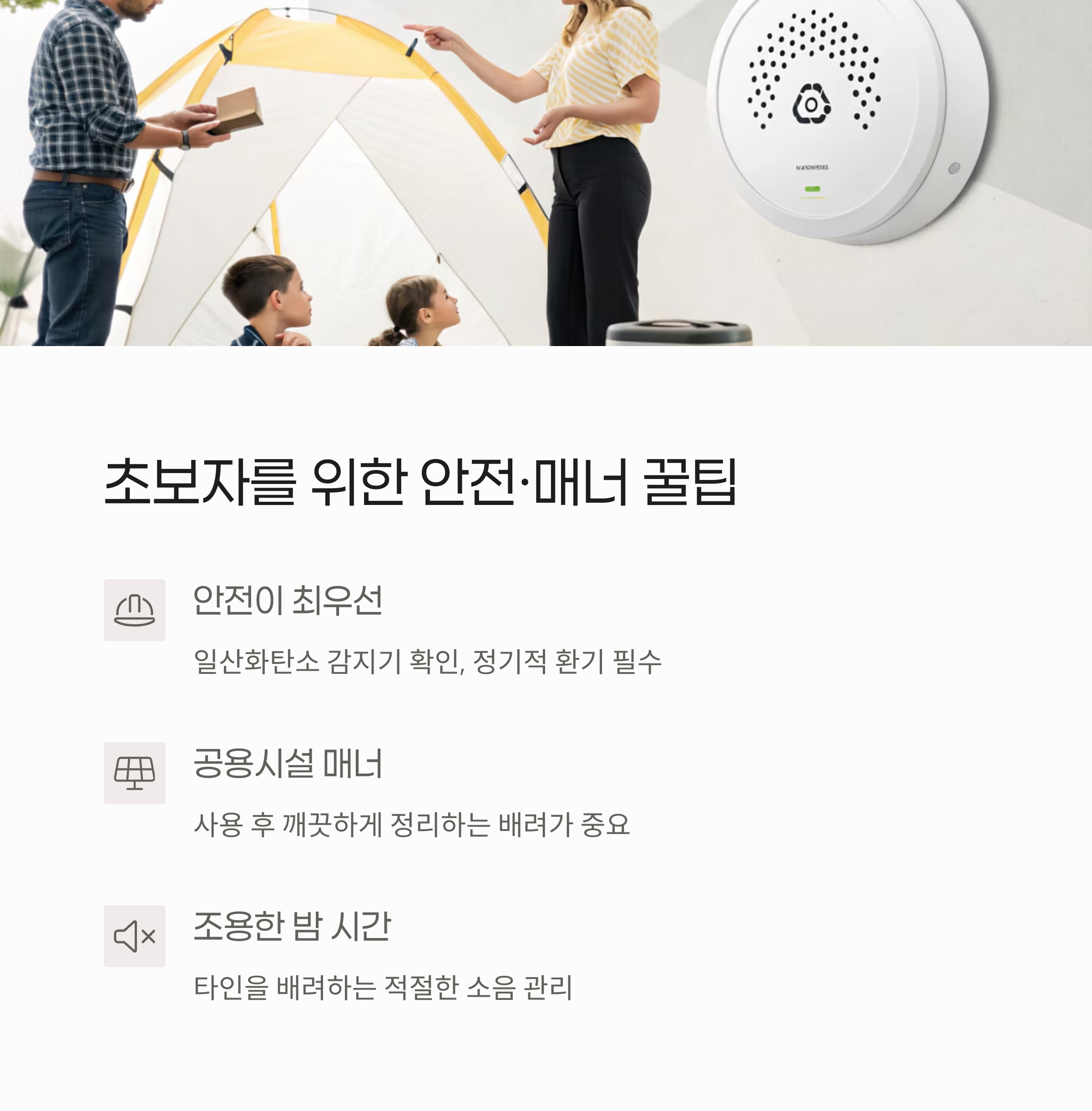 ## 캠핑 초보를 위한 안전·매너 꿀팁