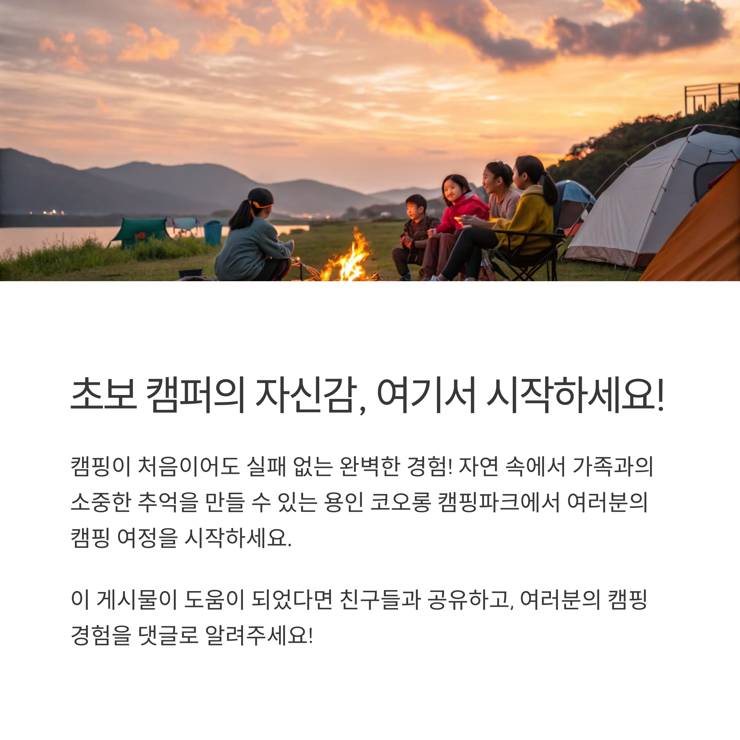 용인 코오롱 캠핑파크는 캠핑의 첫 시작을 고민하는 분께 더없이 좋은 선택입니다