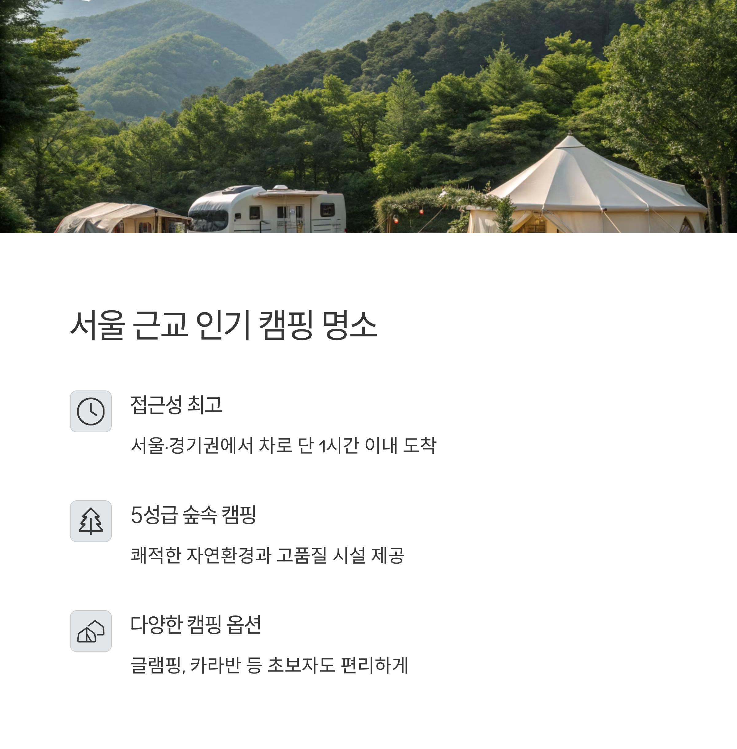 편리한 시설, 다양한 프로그램, 접근성까지 모두 갖춘 곳에서 캠핑의 매력을 마음껏 느껴보세요
