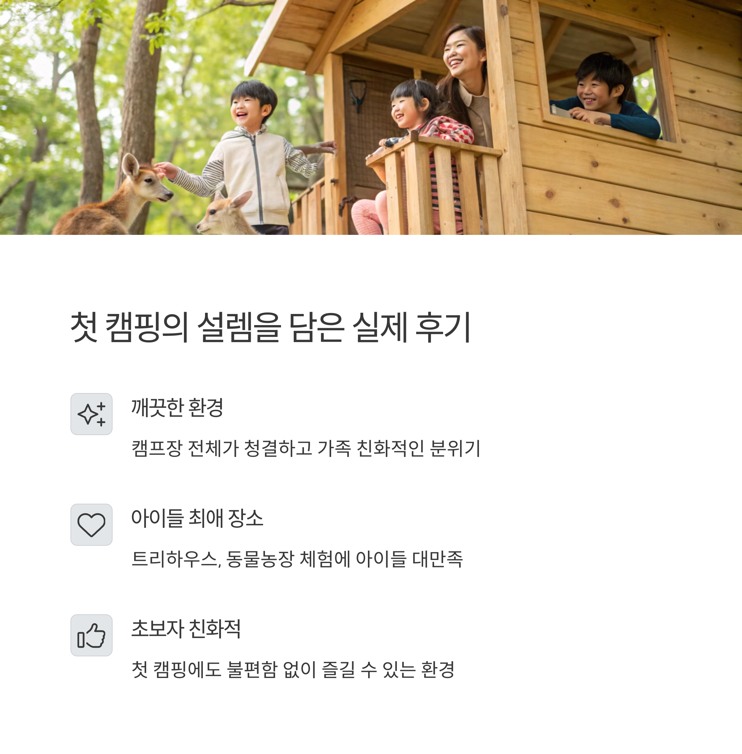 "캠핑의 첫 기억을 즐겁게 남기고 싶다면 꼭 한 번 방문해보세요"