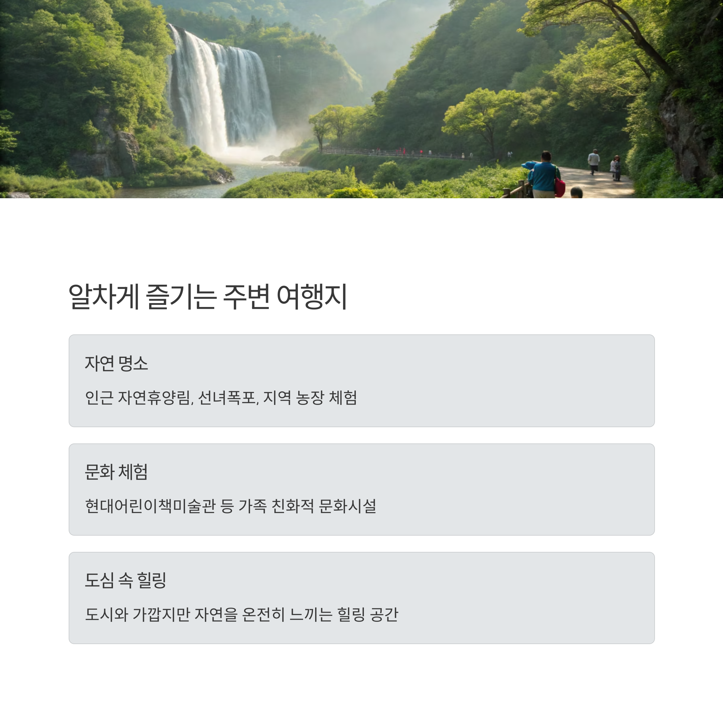 당일치기 또는 1박2일 여행으로도 손색없는 코스가 많아 가족 모두의 만족도가 높아요