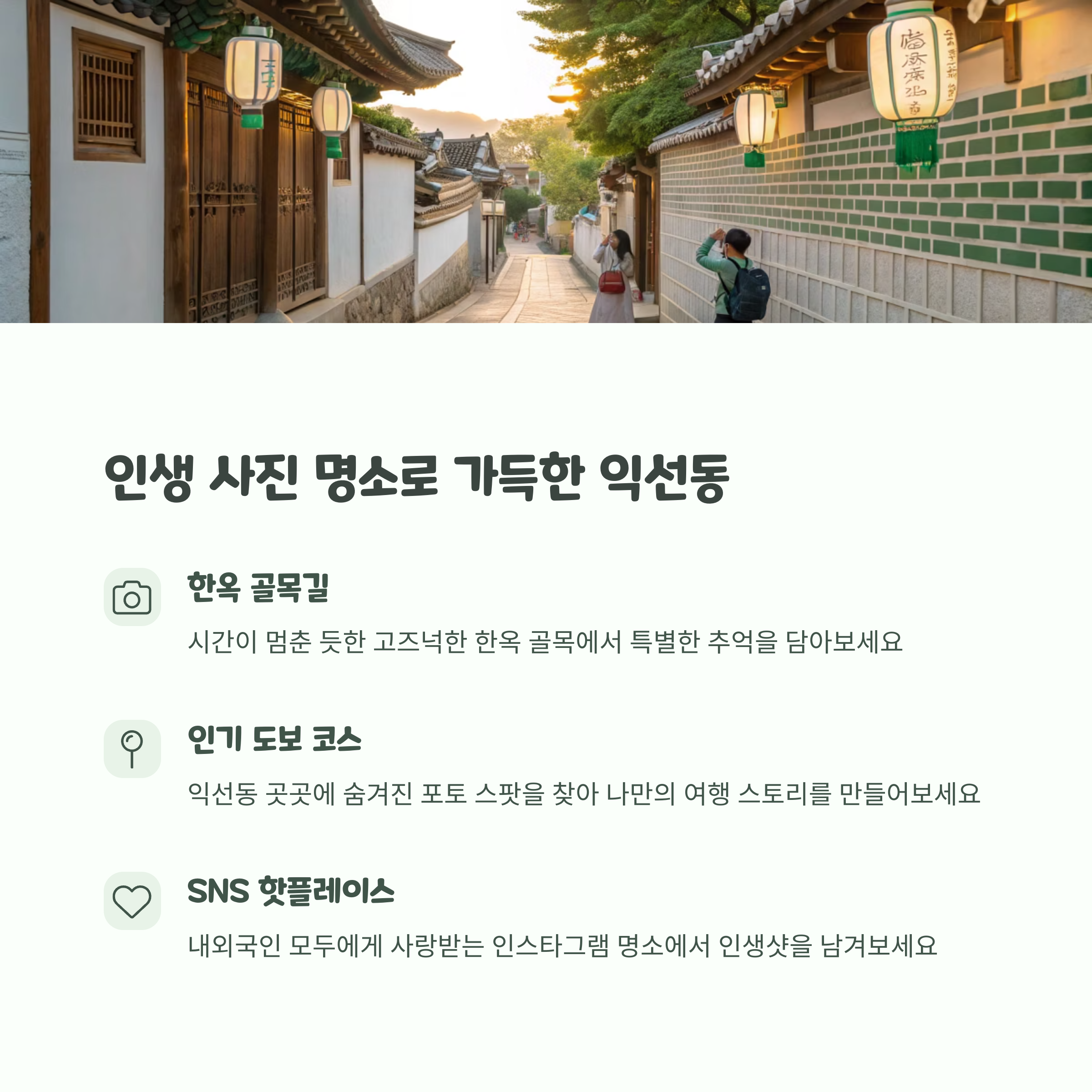 | Q. 익선동에서 가장 좋은 사진 명소는 어디인가요? |