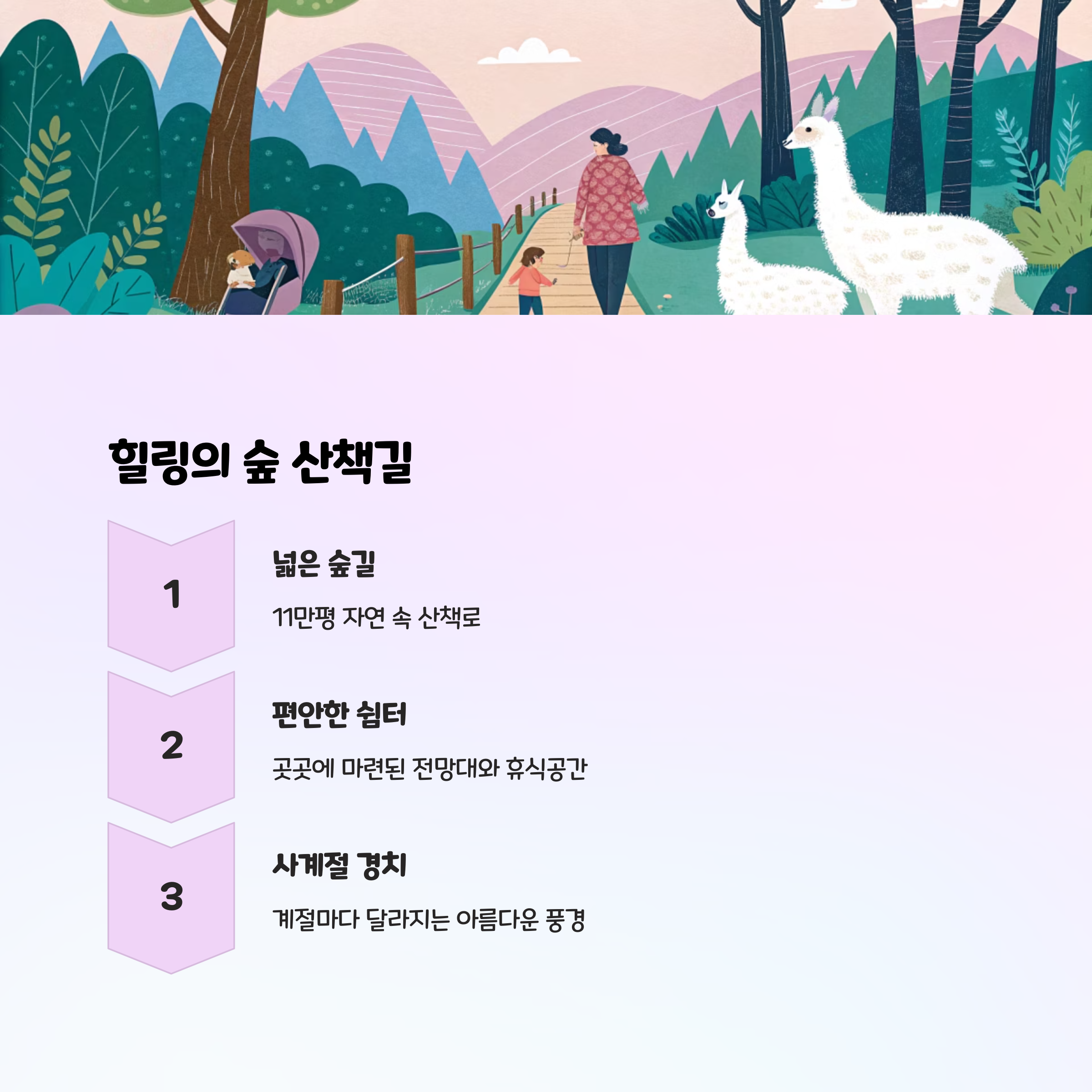 이곳 산책길은 "가족의 소중한 대화가 자연스럽게 이어지는 시간"입니다