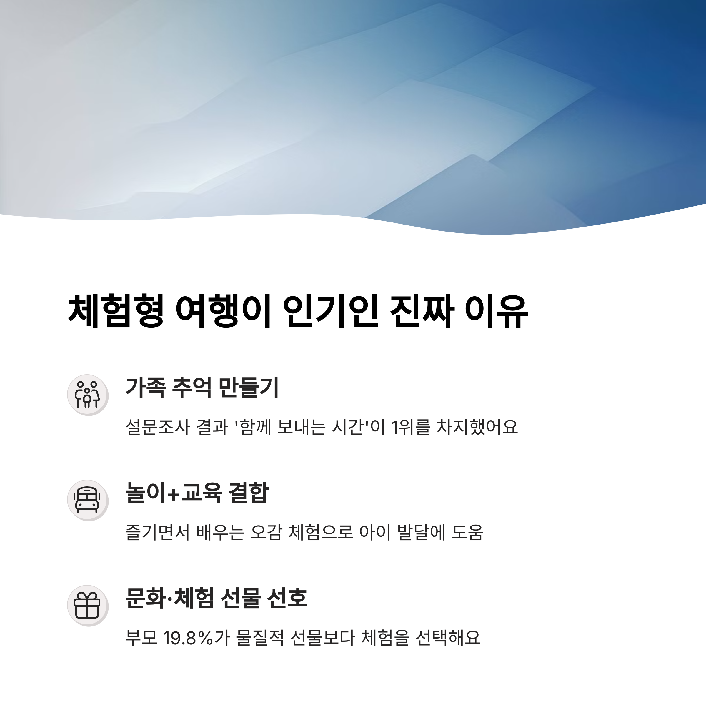 "체험형 여행지는 부모와 아이 모두에게 잊지 못할 경험을 선물합니다."