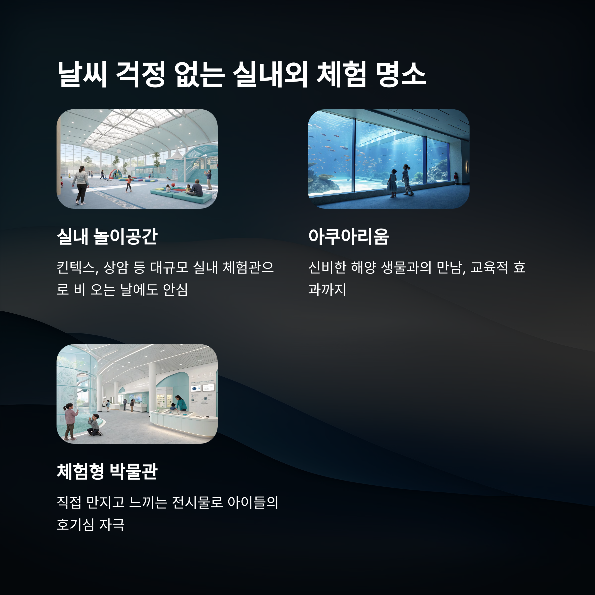 '키즈카페', '실내 동물원', '아쿠아리움' 등 다양한