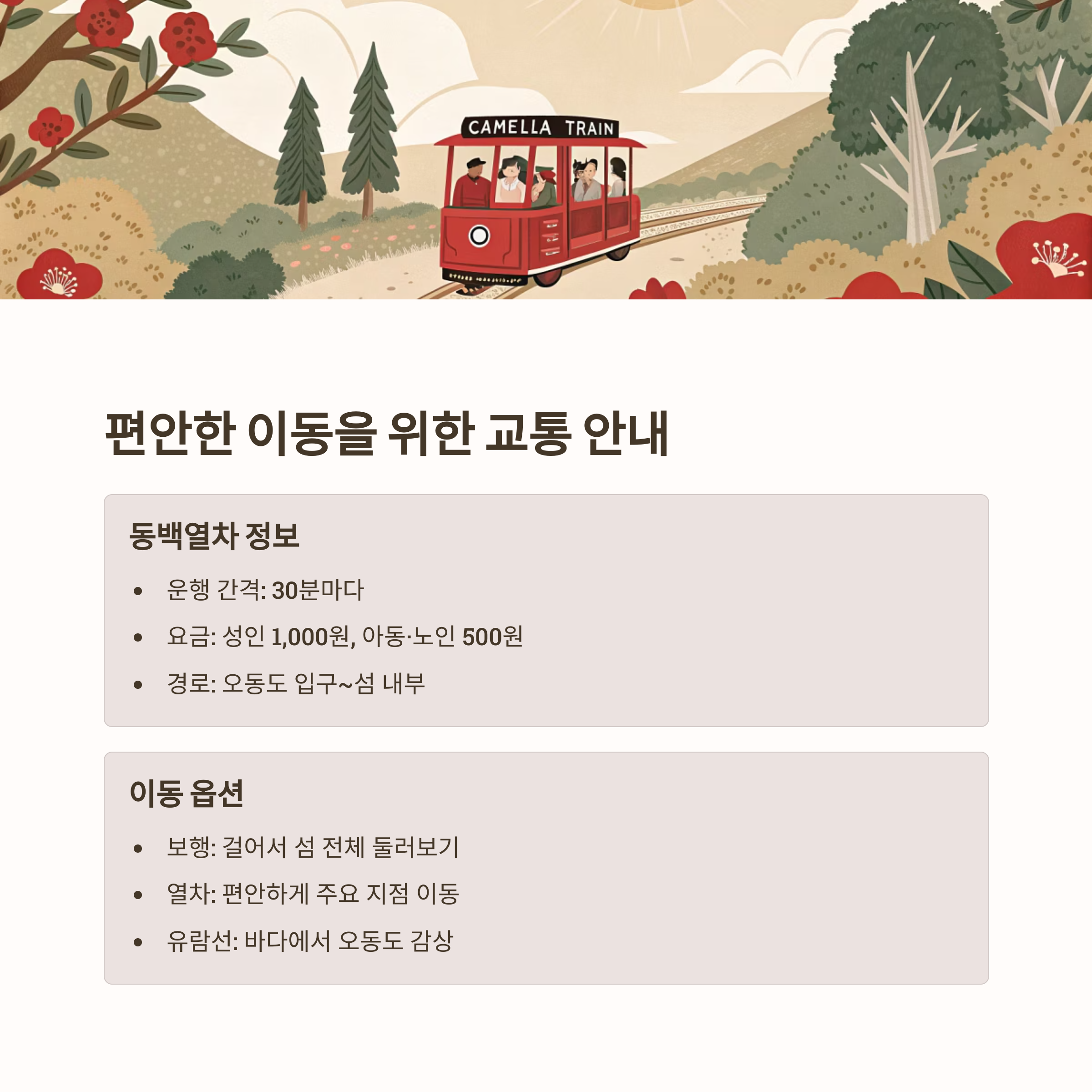 | 주요 시기 | 1월~3월: 동백꽃 시즌 |