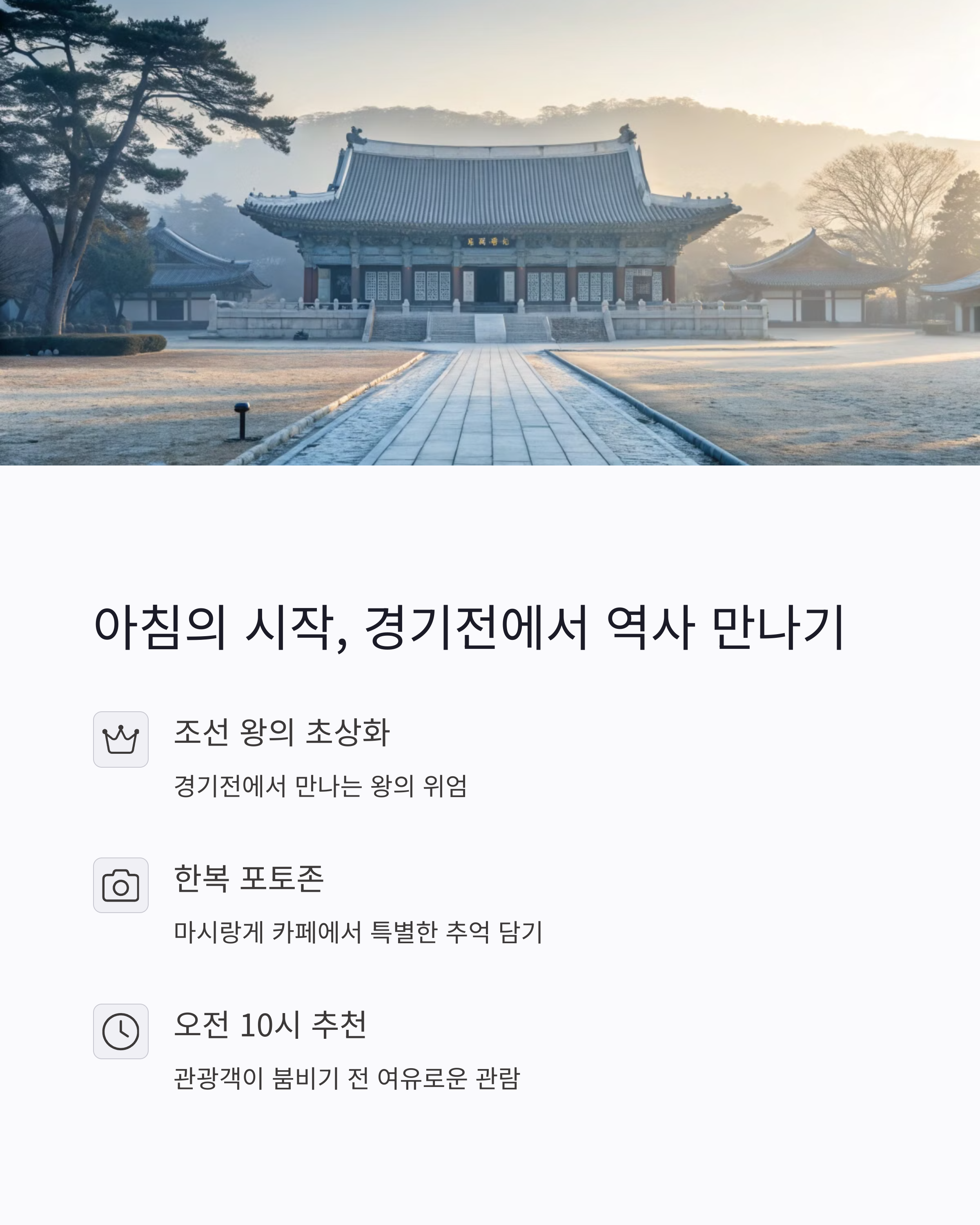 | 10:00 - 11:00 | 경기전 방문 | 조선 역사 감상 | 경기전 |