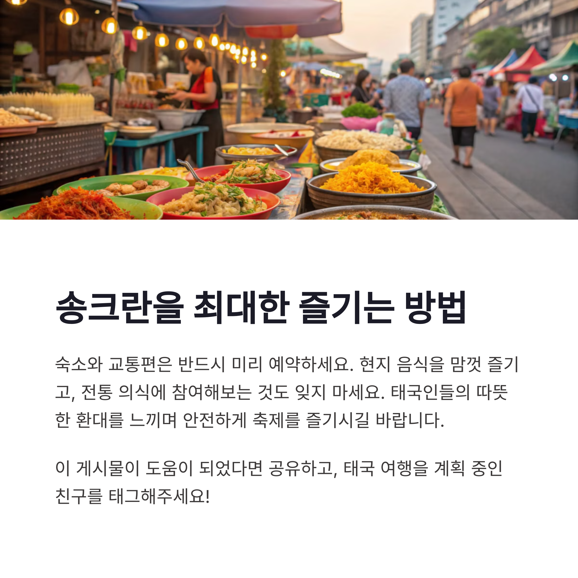 송크란 축제를 다녀오셨나요? 또는 처음 도전해보고 싶으신가요? 댓글로 여러분의 준비 팁이나 궁금증, 기대되는 포인트를 함께 나눠주세요! 여러분의 경험이 다음 여행자에게 큰 도움이 될 수 있어요.