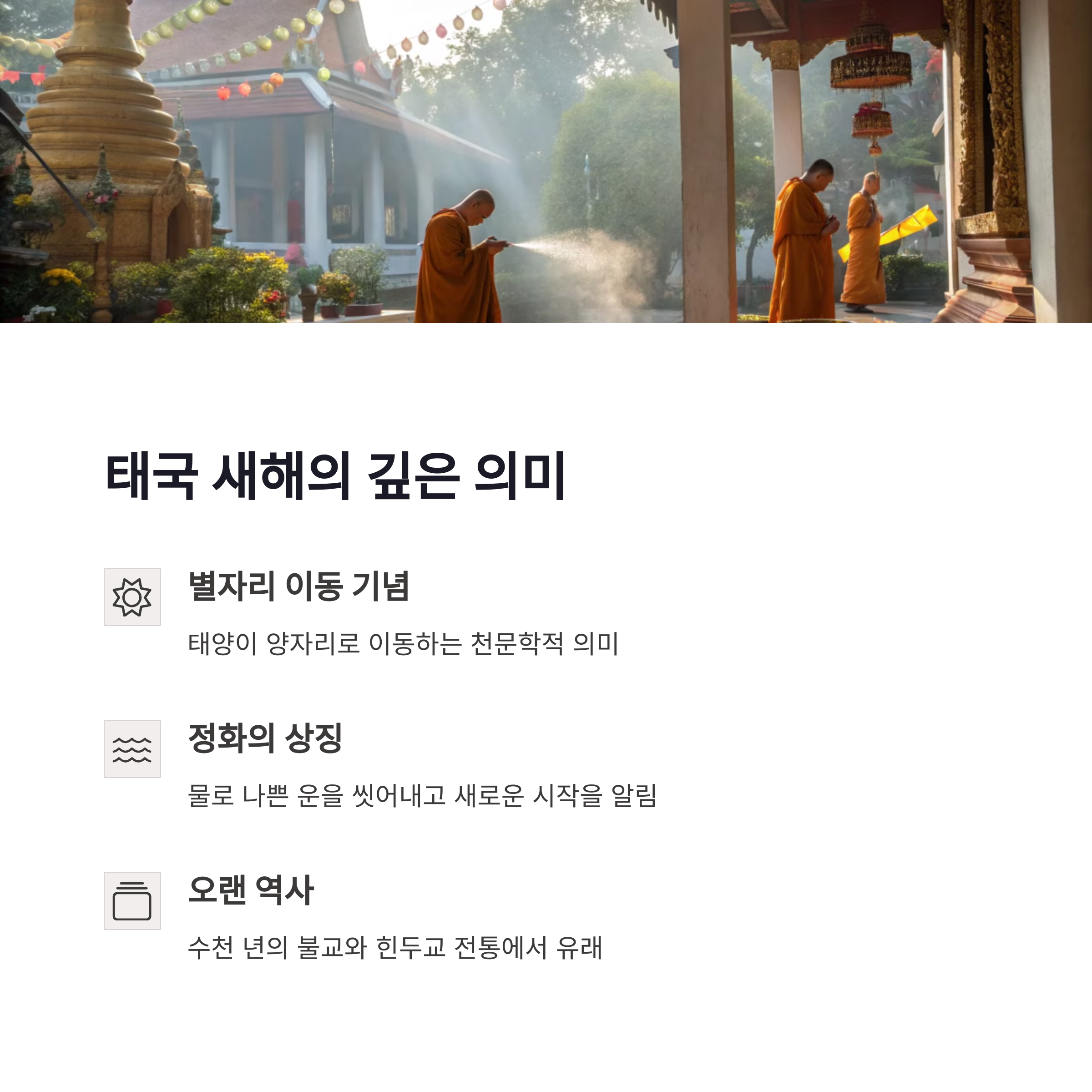 태국의 송크란 축제는 물로 하나되는 특별한 경험입니다. 단순한 재미를 넘어 현지 문화를 이해하고, 서로를 존중하며 축제를 즐긴다면 더욱 깊이 있는 여행이 될 수 있습니다. 준비만 잘 한다면, 초보자도 누구보다 즐겁고 안전하게 이 축제를 만끽할 수 있습니다. '싸왓디 삐 마이' 인사와 함께 현지인의 웃음을 이끌어내며, 나만의 인생 사진과 추억을 만들어보세요!