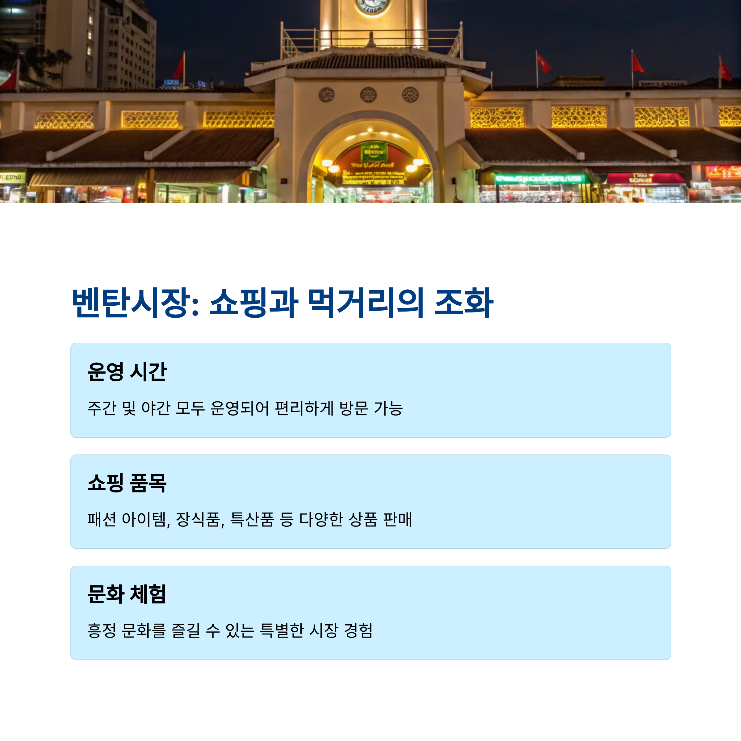 | 벤탄시장 위치 | Ben Thanh, District 1, Ho Chi Minh City, 베트남 |