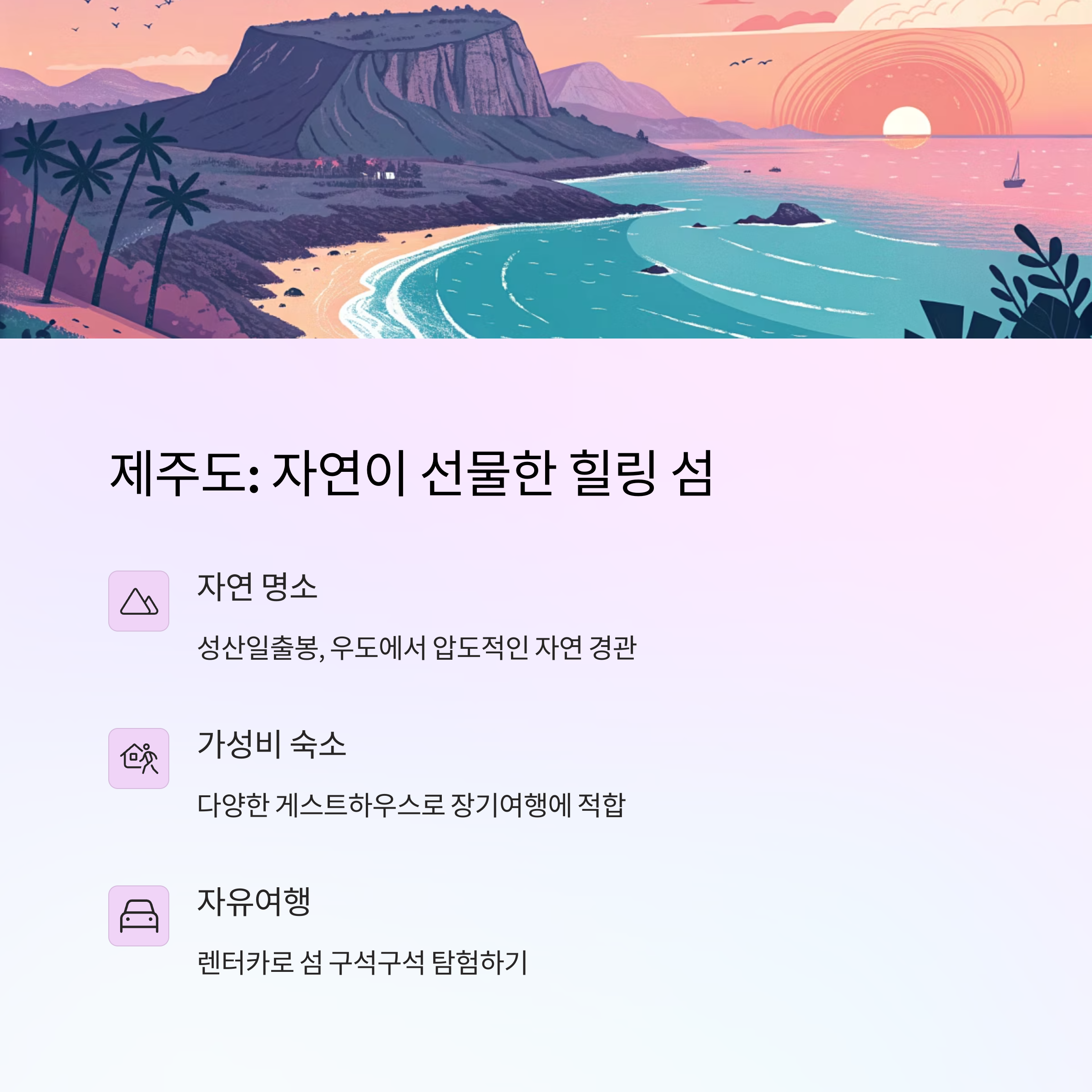 제주도는 자연 경관이 아름다워 20대 여행자들 사이에서 인기가 높습니다.