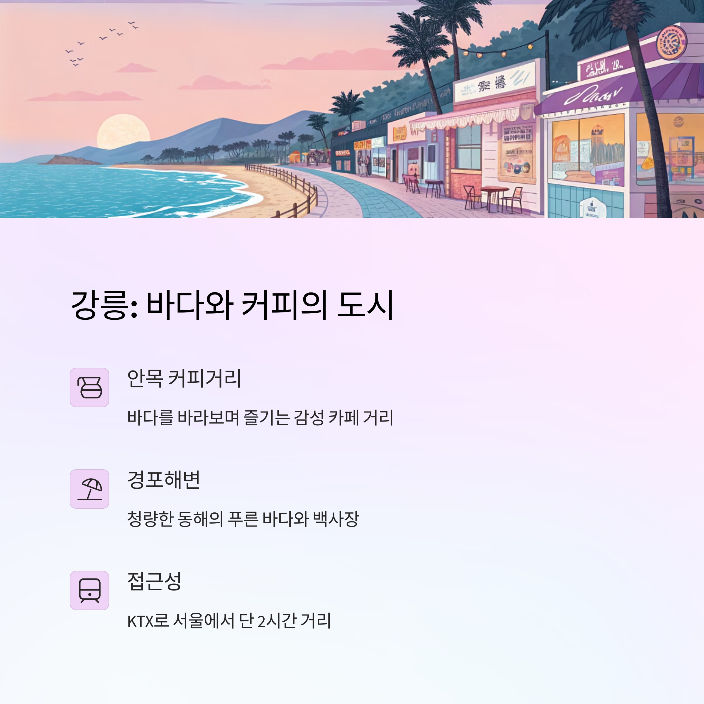 강릉, 부산, 제주도의 매력은 여름 최적화된 여행지로 트렌디합니다.