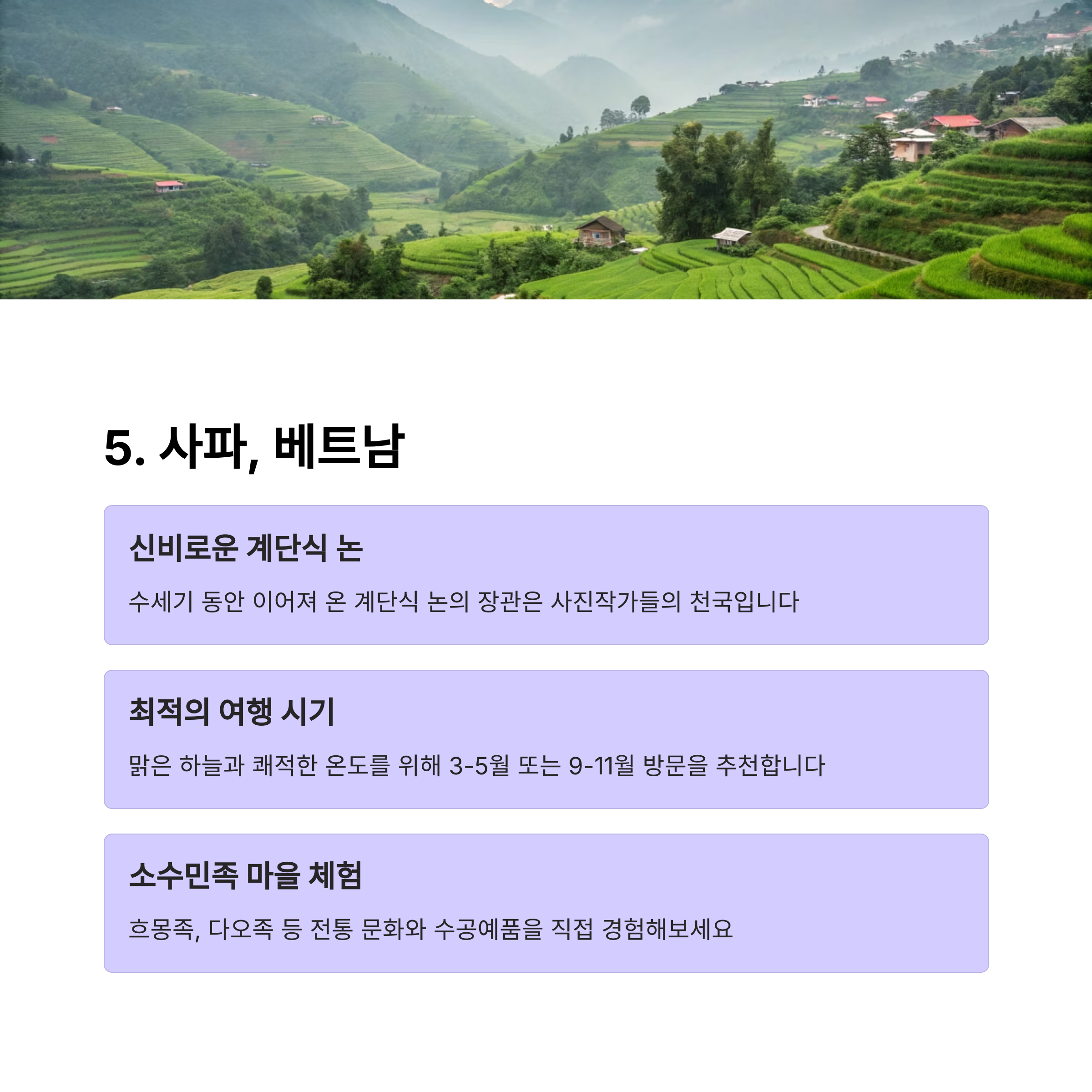 최종적으로, 사파의 전원 풍경은 자연과 힐링을 원하는 여행자에게 완벽한 선택입니다.
