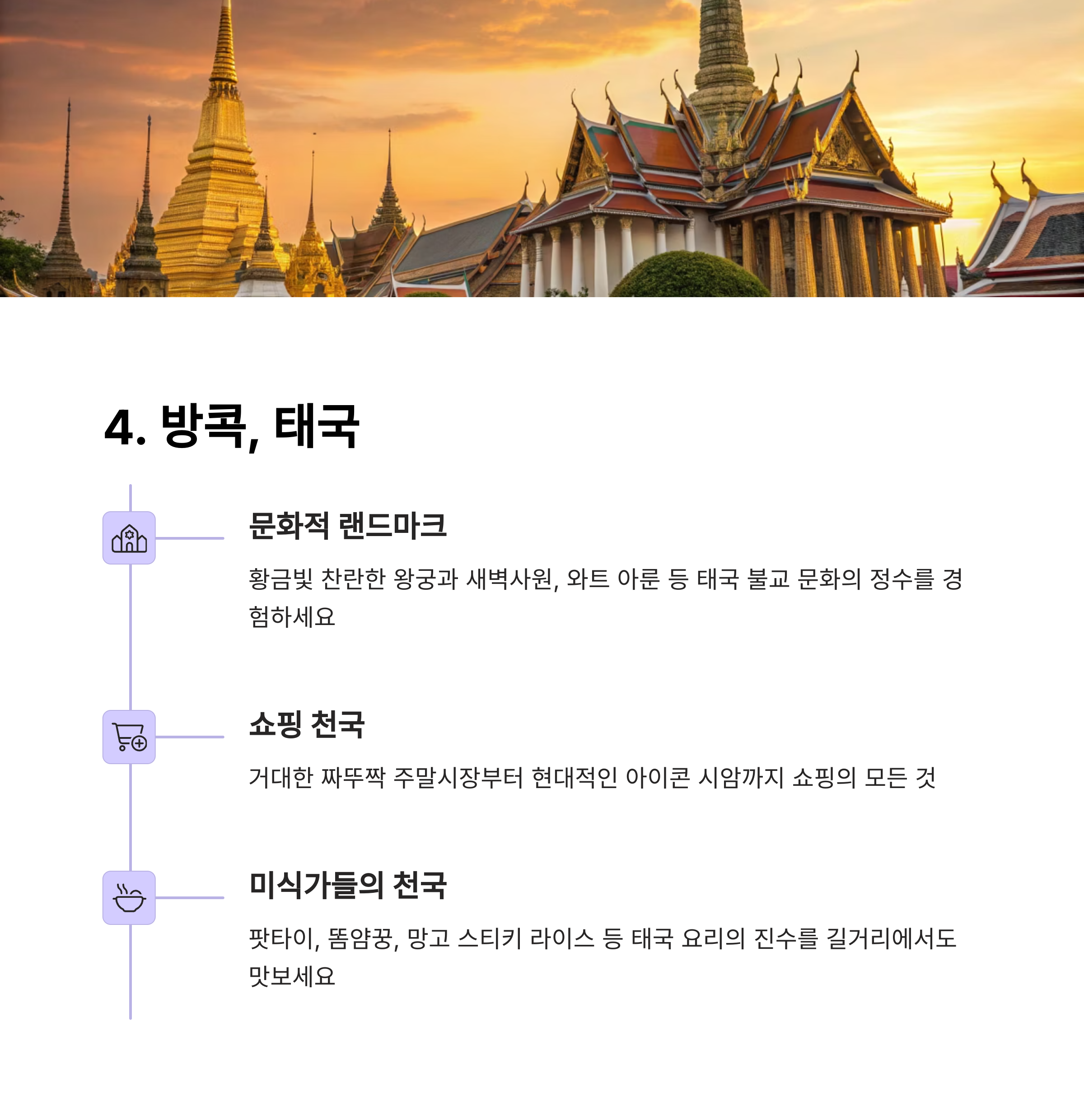 | 방콕, 태국 | 문화와 쇼핑의 천국 |