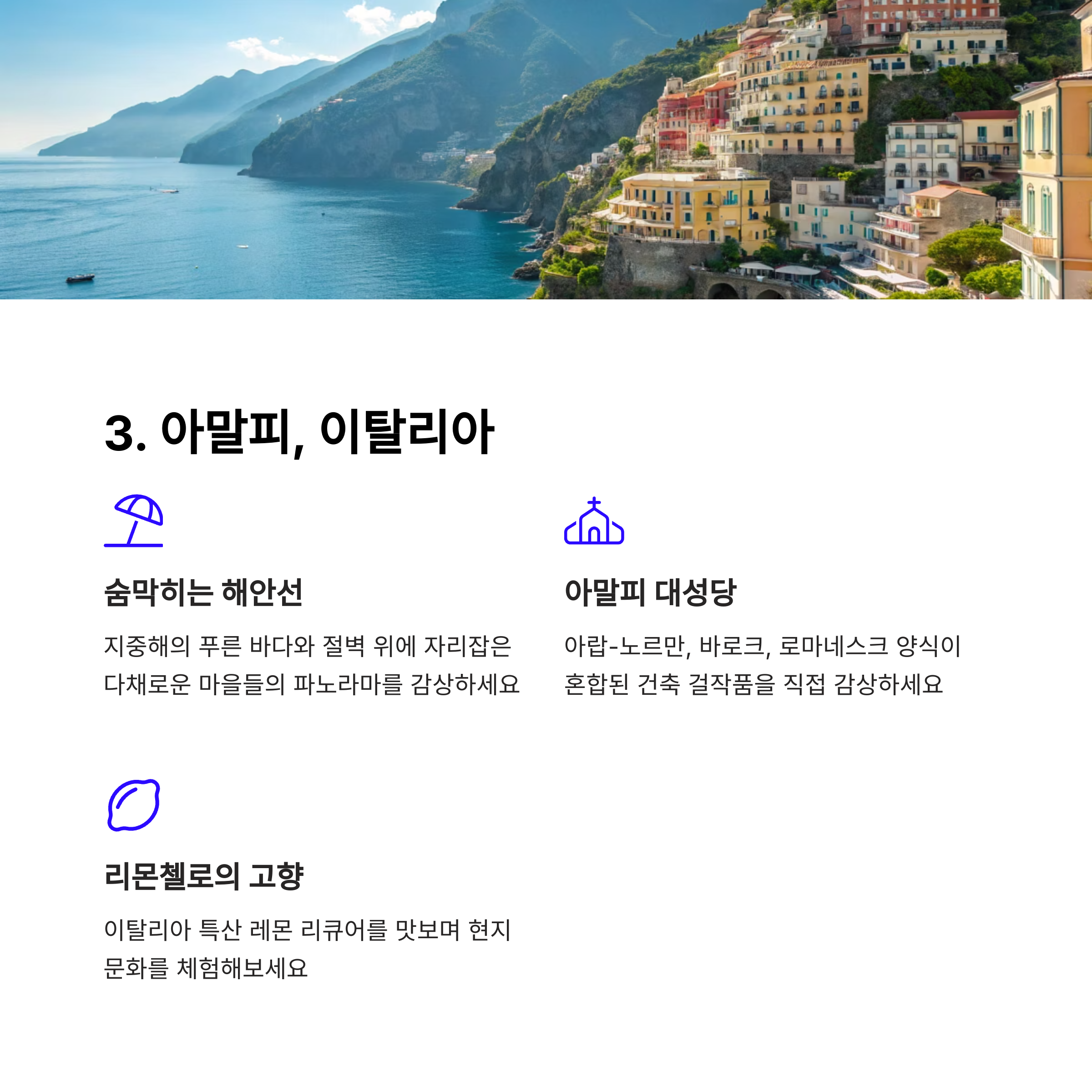 아말피의 해안가와 방콕의 시장은 탐험과 발견의 기회를 제공합니다.