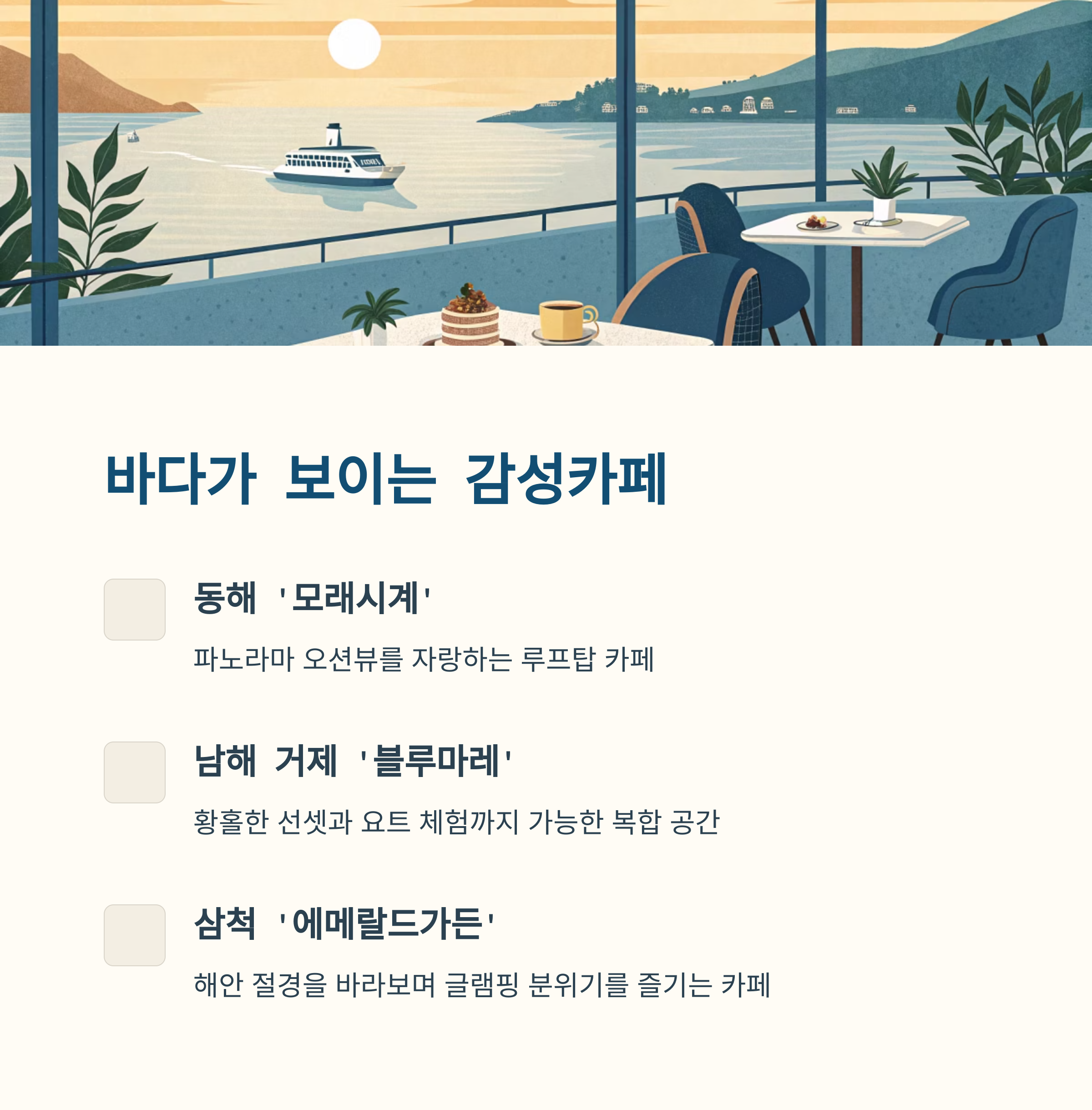 바다를 품은 감성카페 – 동해&남해 라인