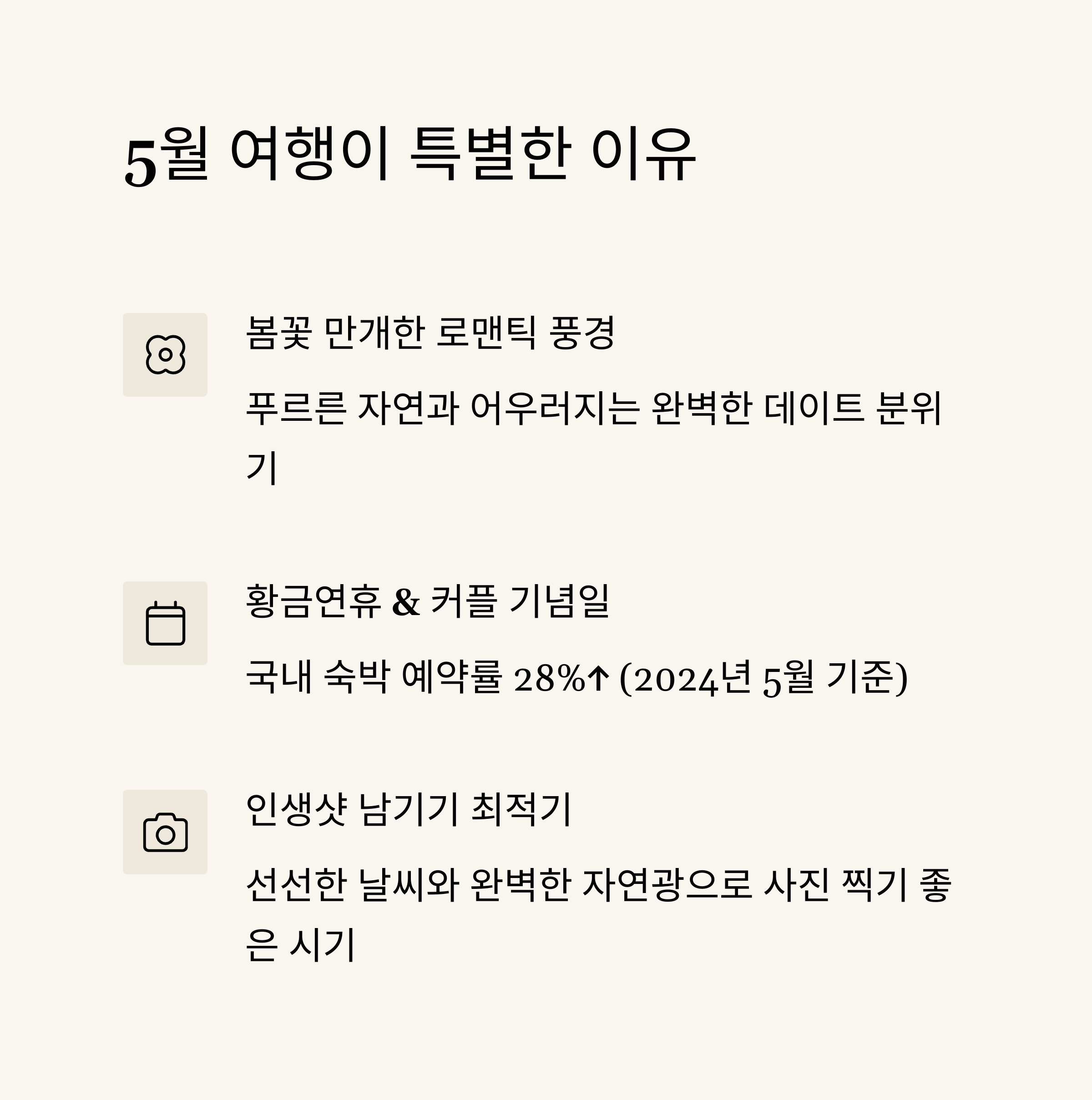 5월 여행이 특별한 이유 - 연인만의 낭만적인 순간