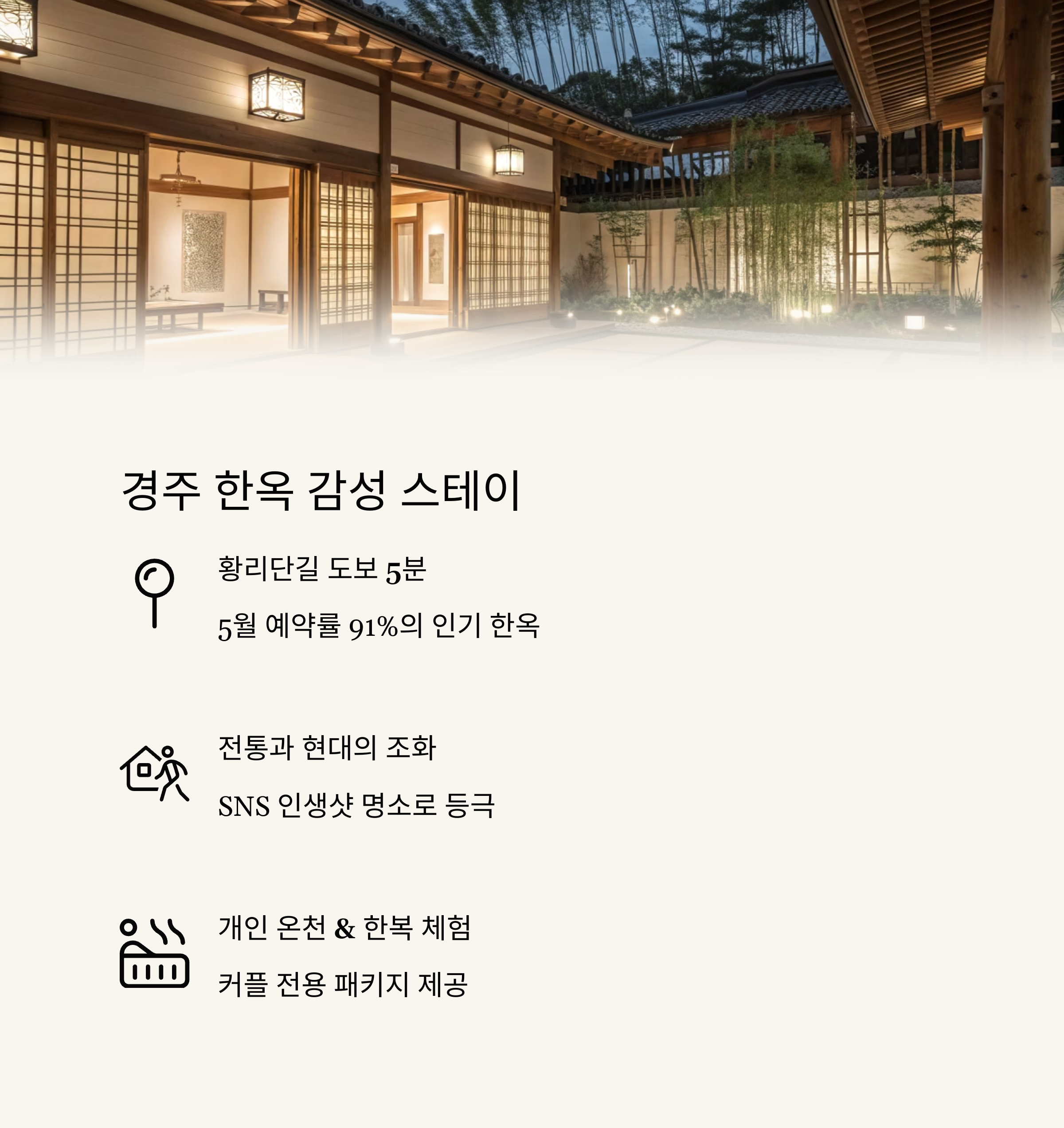 감성 한옥에서 더욱 아름답게 기억됩니다!" 🏯