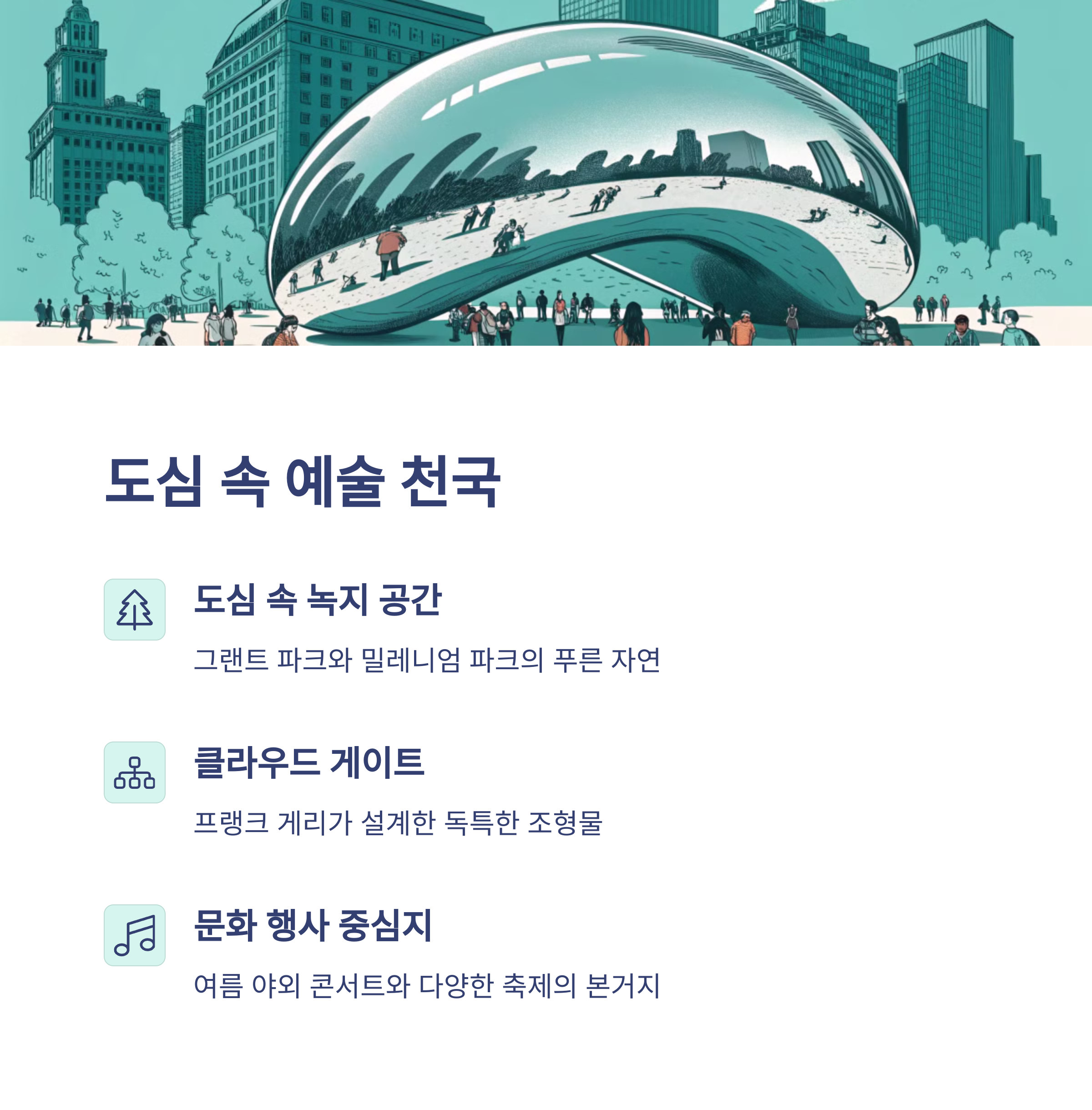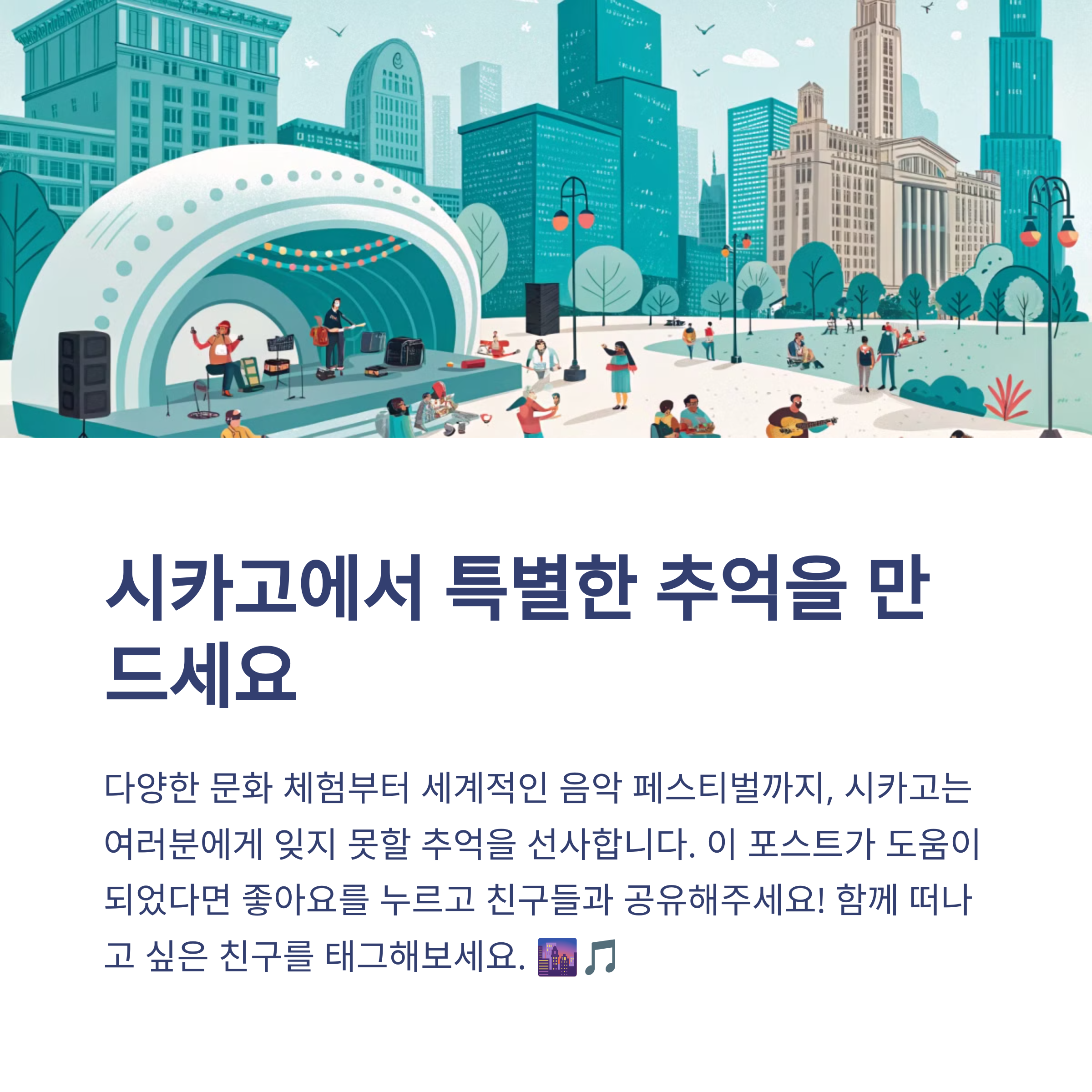 시카고는 음악과 문화가 가득한 도시로, 꼭 방문해 볼 가치가 있습니다.